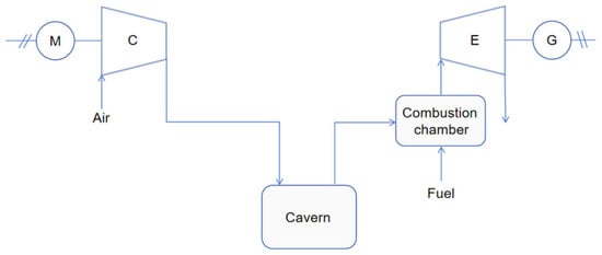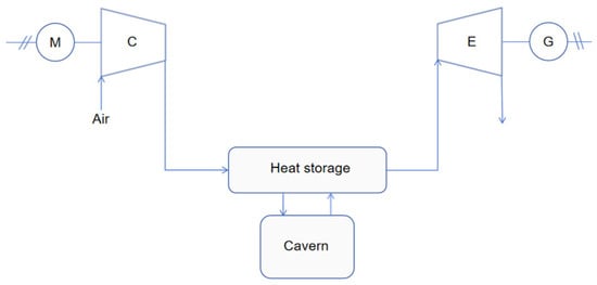 Scheme of the classical CAES, where M—motor, C—compressor, E—expander, and G—generator.