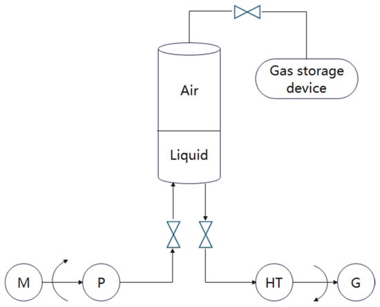 Scheme of isothermal CAES, where P—pump and HT—hydraulic turbine.