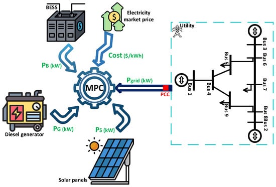 - Joshal, K.S.; Gupta, N. Microgrids with model predictive control: A critical review. Energies 2023, 16, 4851. [Google Scholar] [CrossRef]