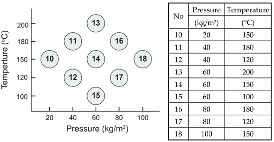 The results of the regression analysis reveal that the variables affecting performance indicators can be classified into linear terms (m1, m2), quadratic terms (m11, m22), and interaction terms (m12). To evaluate the significance of these variables, the study employs Student’s t-test, which provides deeper insights into the individual and combined effects of pressure and temperature.