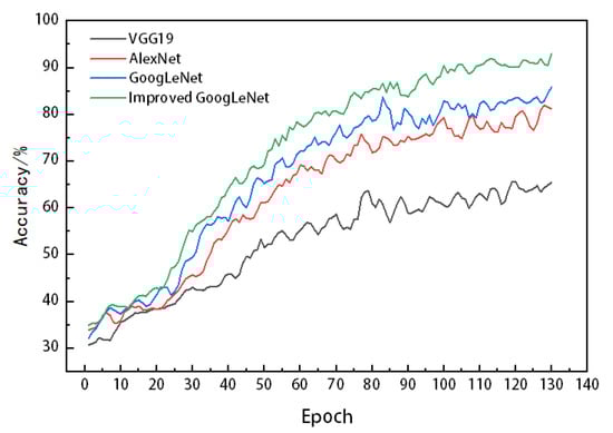 As illustrated in Figure 11, the improved GoogLeNet model demonstrated the best overall performance in the shrimp freshness classification experiment. It achieved high accuracy while effectively reducing the loss value and improving training efficiency. Compared with other models, this method exhibited stronger competitiveness in terms of classification accuracy, stability, and computational efficiency, providing an efficient and feasible solution for intelligent shrimp freshness recognition.