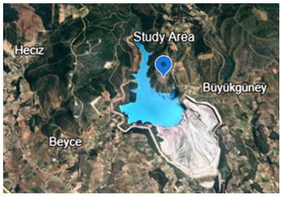 A hybrid PV–wind–hydrogen energy system is planned to be installed in the area located in Soma district of Manisa province at coordinates 39°15′09″ N 27°38′02″ E. The site layout of the planned system is shown in Figure 5.