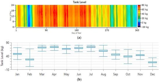 The cyclical change between storage and consumption of hydrogen throughout the year is presented in detail in Figure 9 with data on hydrogen tank level and frequency of use.