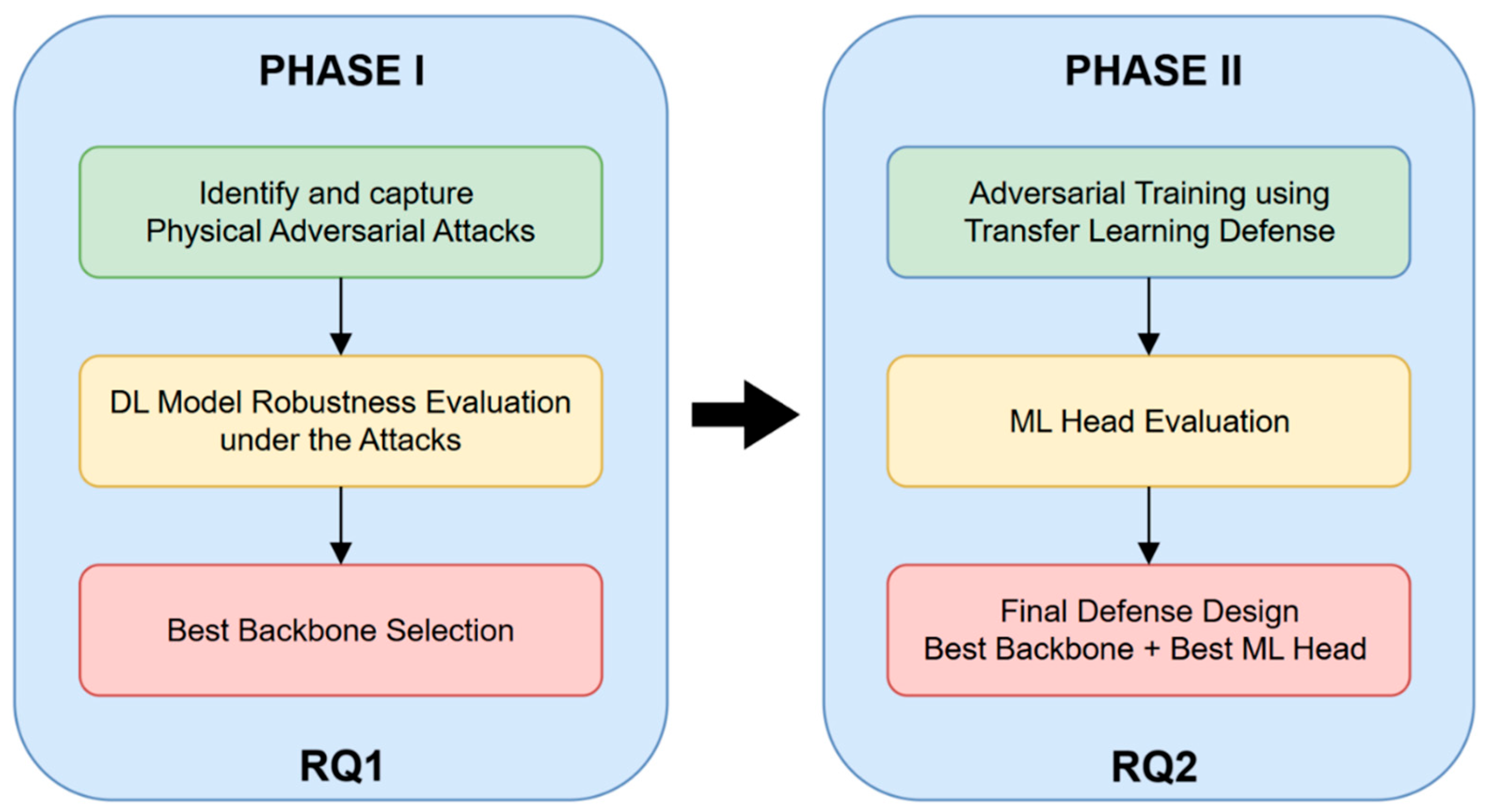 - RQ2: What defense strategy can enhance the resilience of such systems against adversarial conditions? This question examines the effectiveness of modular, transfer-learning-based defense mechanisms in mitigating adversarial confusion and whether such architectures can maintain high diagnostic integrity under tampered scenarios.