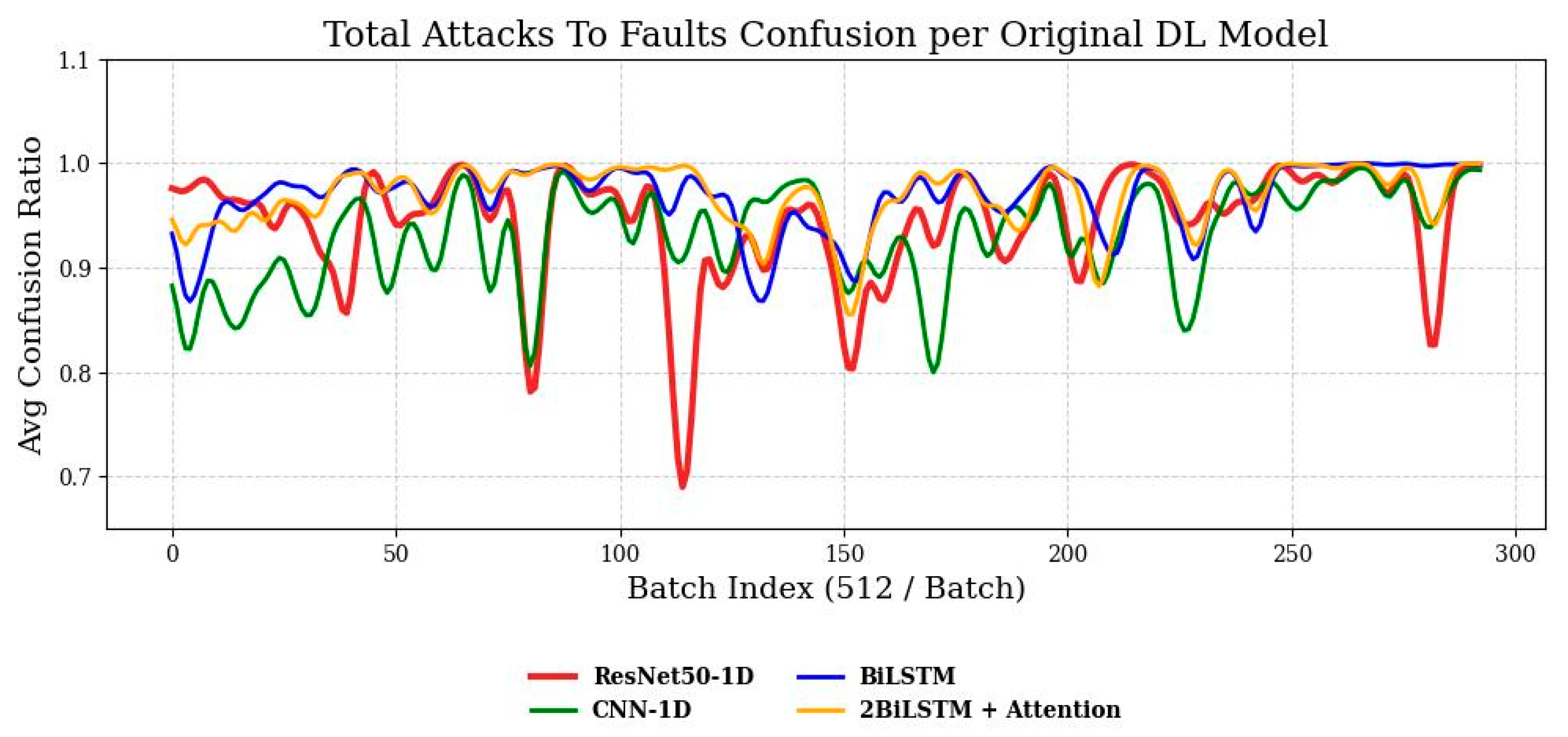 - maxj Cij = the maximum misclassification confidence for attack i, i.e., the fault class in which the model most strongly confuses that attack.