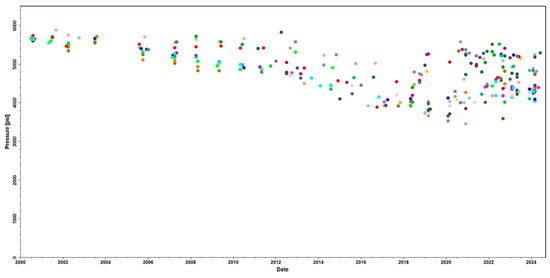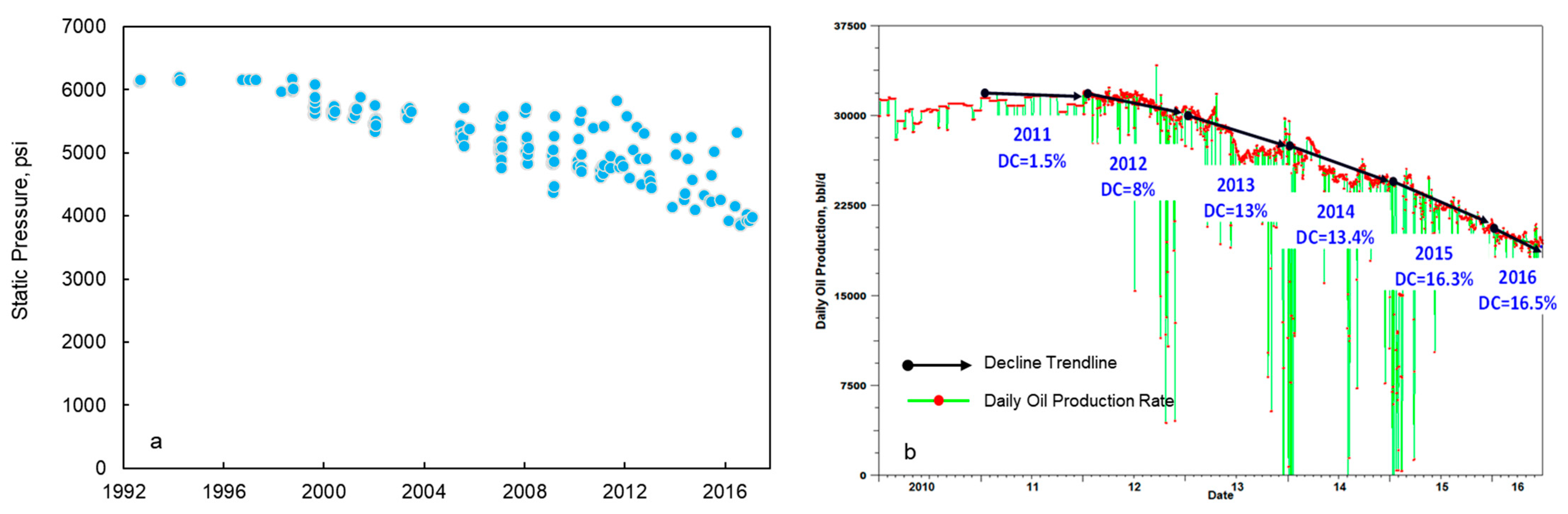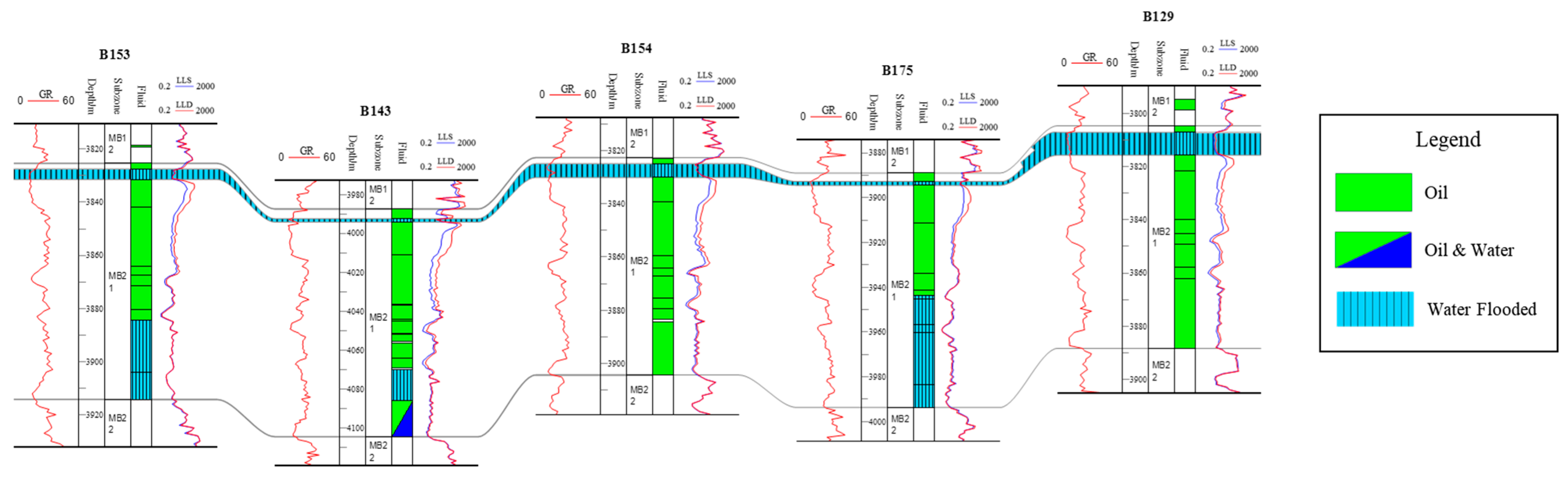 - Perez, D.; Salicioni, F.; Ucan, S. Cyclic water injection in San Jorge Gulf Basin, Argentina. In Proceedings of the SPE Latin America and Caribbean Petroleum Engineering Conference, Maracaibo, Venezuela, 21–23 May 2014. Paper number SPE-169403-MS. [Google Scholar]