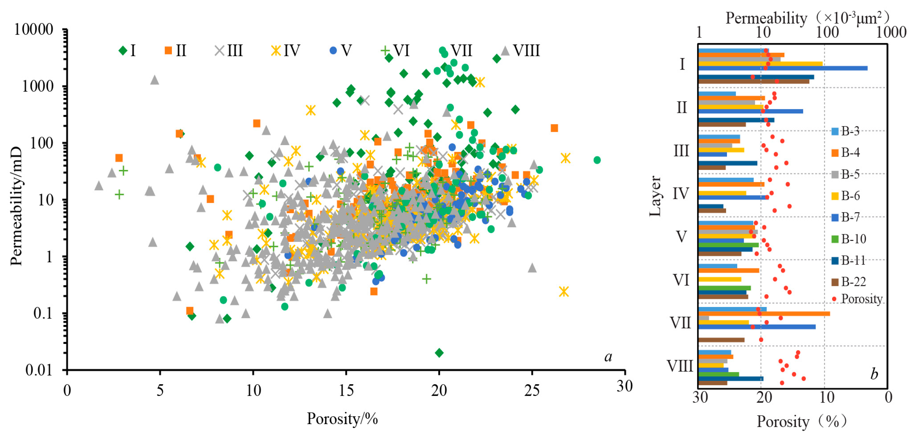 | Sublayer | Thickness, m | Porosity, % | Permeability, mD | Sublayer | Thickness, cm | Porosity, % | Permeability, mD |