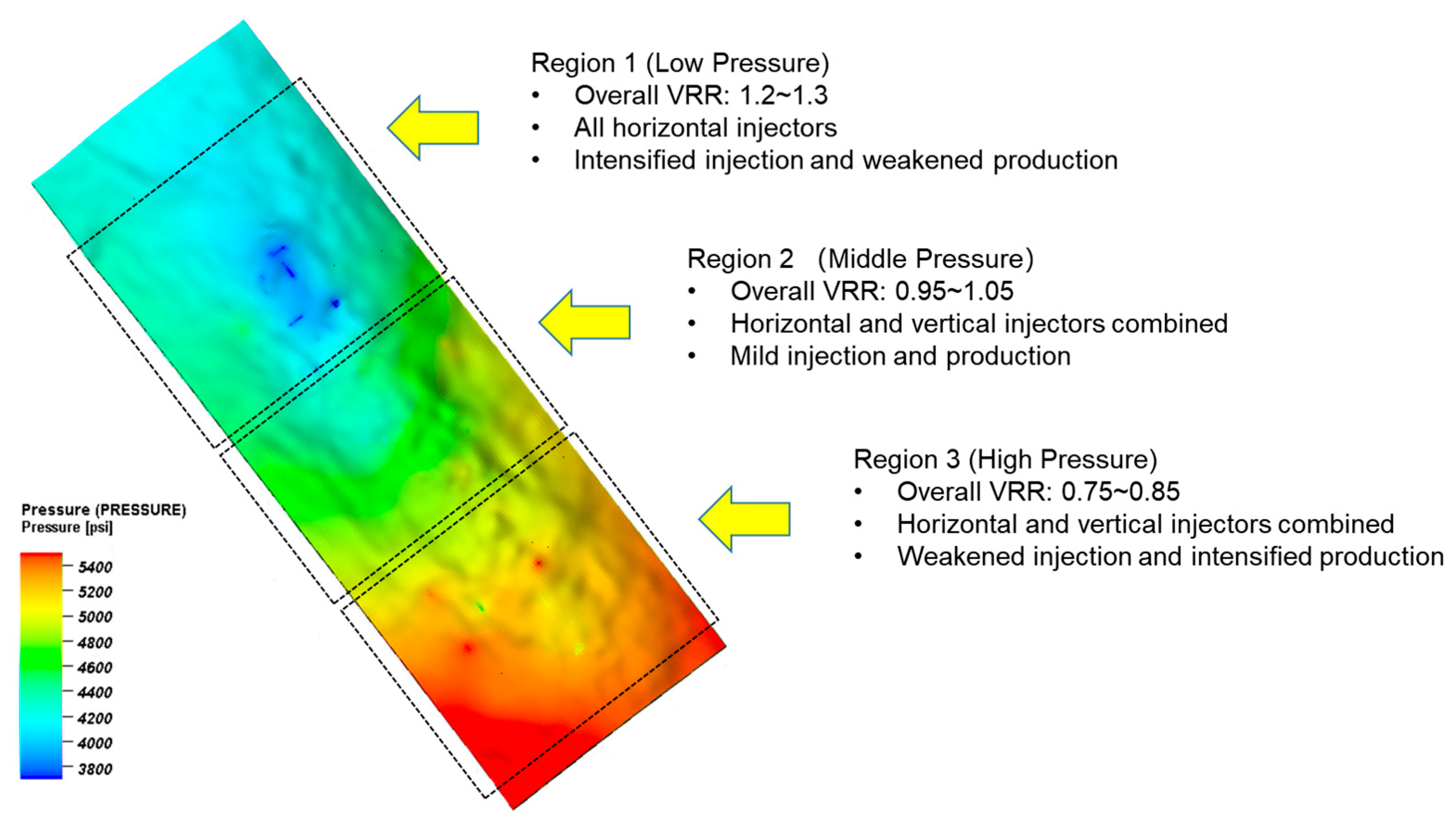 | Pattern Phase | Injection to Production Well Ratio | Field Water Cut Stage | Target VRR | Pressure Recovery Target, Psi/Year |
