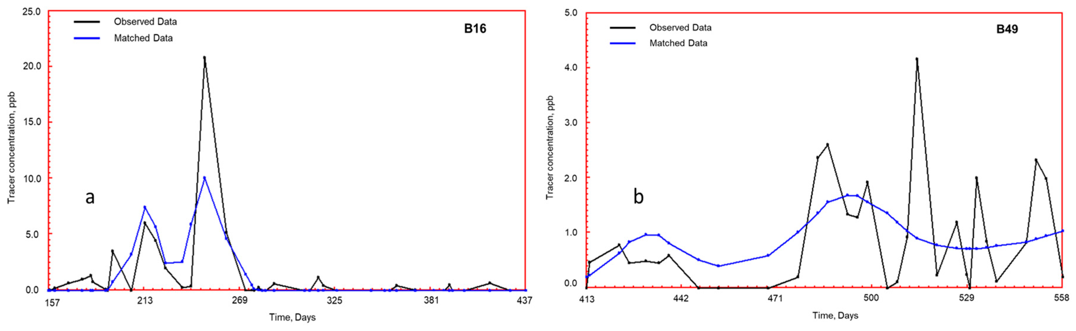 - Shook, G.M.; Pope, G.A.; Kazuhiro, A. Determining reservoir properties and flood performance from tracer test analysis. In Proceedings of the SPE Annual Technical Conference and Exhibition, New Orleans, LA, USA, 4–7 October 2009. Paper number SPE-124614-MS. [Google Scholar]