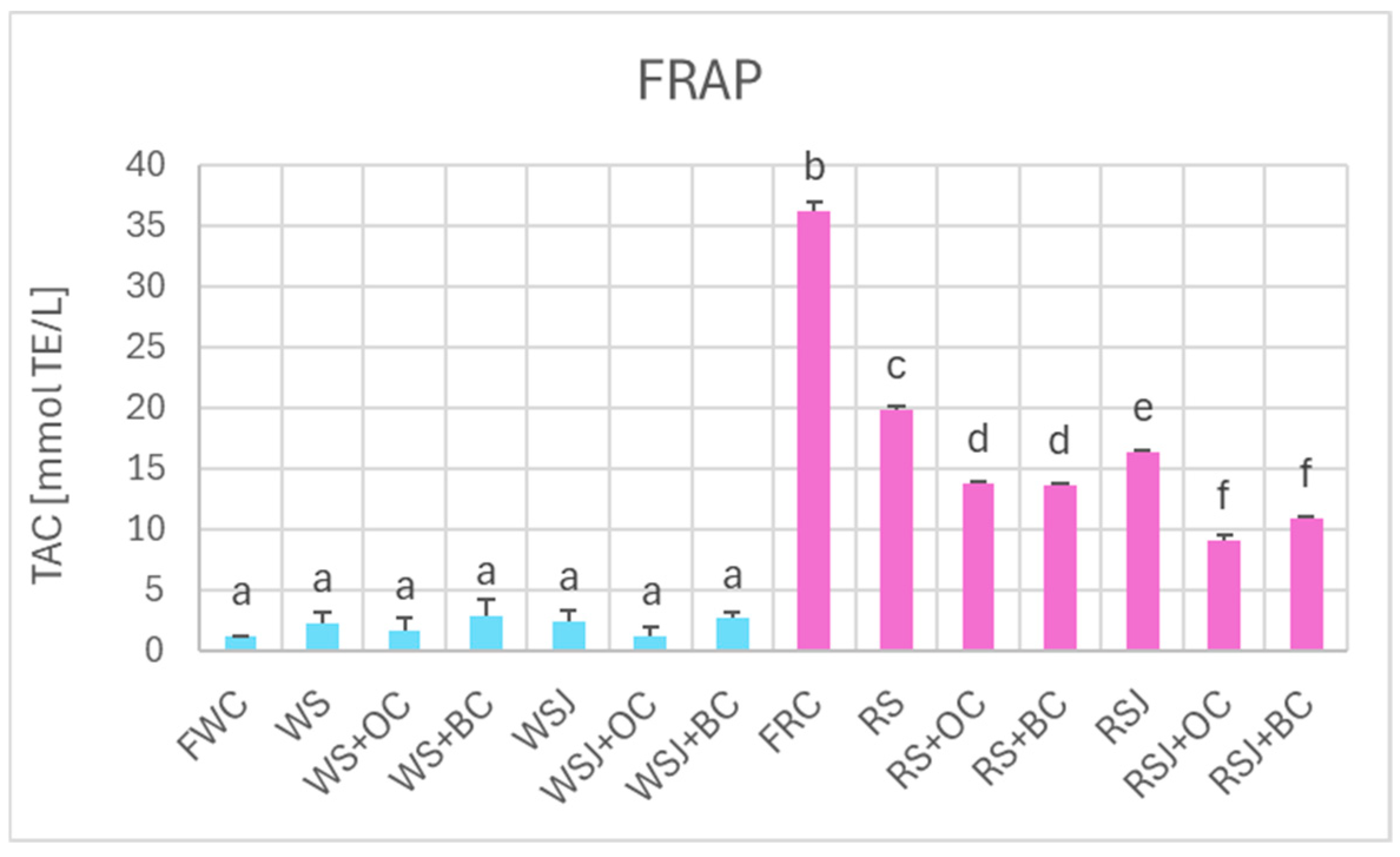 TAC, FRAP [mmol TE/kg] | 1.2 ± 0.1 | 36.2 ± 0.9 |