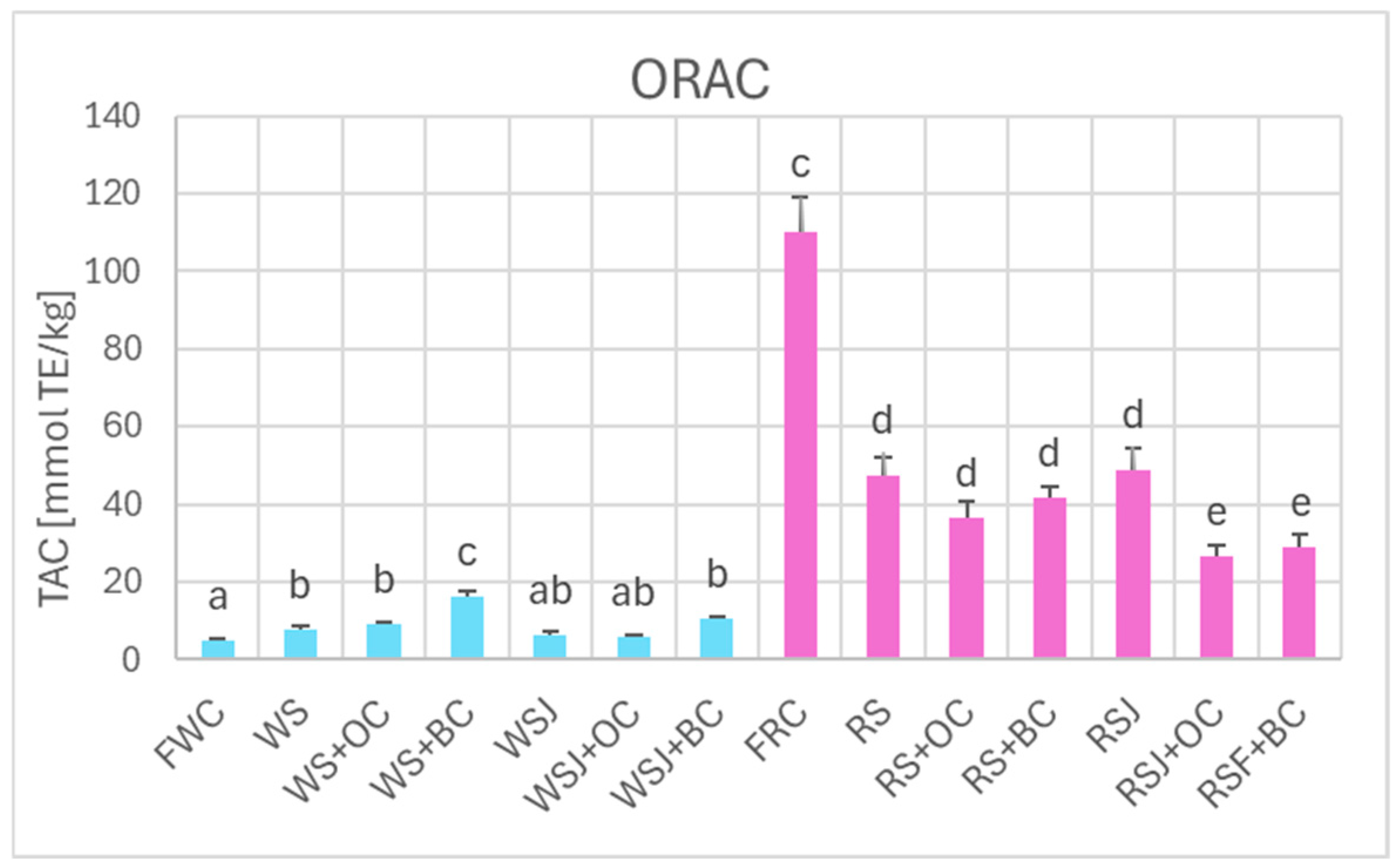 TAC, ORAC [mmol TE/kg] | 5.1 ± 0.2 | 110.3 ± 17.2 |