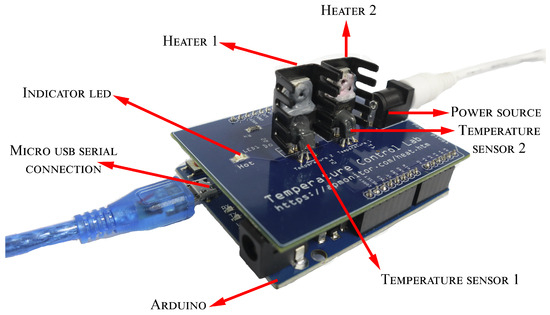 - Insuasti, S.; Paredes, J.L.; Camacho, O. Controllers and Compensators Design for Undergraduate Control Students: Testing with TCLab Arduino kit. In Proceedings of the 2022 IEEE Sixth Ecuador Technical Chapters Meeting (ETCM), Quito, Ecuador, 11–14 October 2022; pp. 1–6. [Google Scholar] [CrossRef]