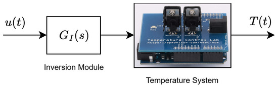 To validate the dynamics of the non-minimum phase system, the experiment performed for system identification was repeated using the plant described in Figure 13. The results are shown in Figure 14. At the beginning of the experiment, the temperature was stabilized at , and when the step input was applied at , a temperature drop of was observed, reaching a minimum of .