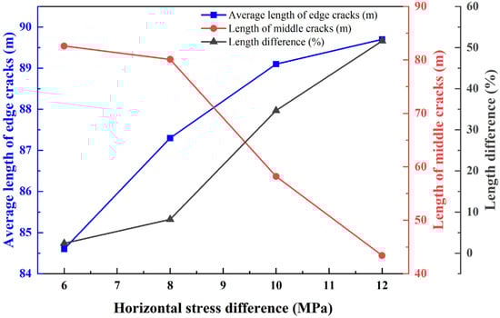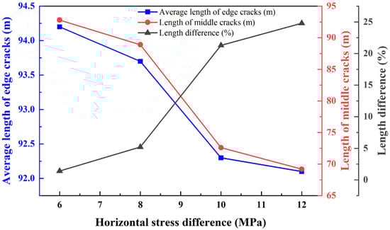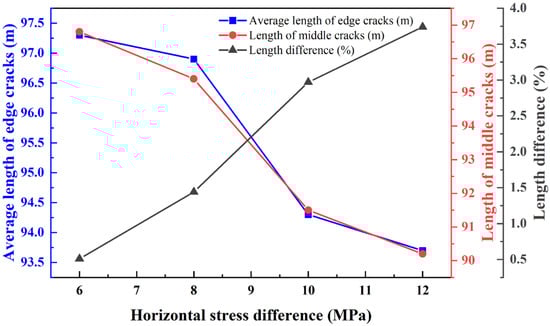 Comparison of the extension lengths of multiple cracks under different horizontal stress differences.