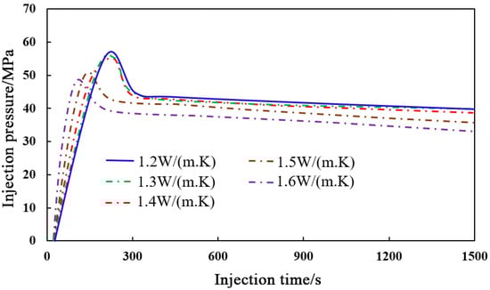 Changes in injection pressure under different rock thermal conductivity conditions.