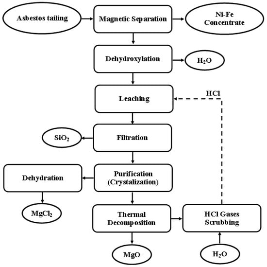 - Özdemir, M.; Çakır, D.; Kıpçak, I. Magnesium recovery from magnesite tailings by acid leaching and production of magnesium chloride hexahydrate from leaching solution by evaporation. Int. J. Miner. Process. 2009, 93, 209–212. [Google Scholar] [CrossRef]