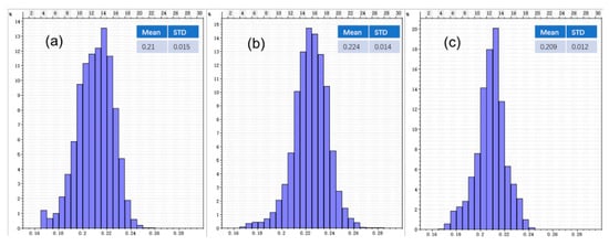 Porosity data distributions across modeling approaches. (a) Vertical well-derived porosity distribution; (b) Horizontal well simulation exhibiting clustering artifacts; (c) Integrated distribution from extracted horizontal data and vertical well simulation.