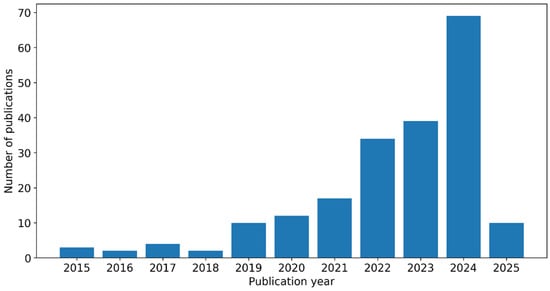 Afterwards, the authors refined some documents by manually reviewing the abstracts and contents of eligible publications. As part of this process, a quality appraisal was conducted based on criteria such as clarity of research objectives, transparency of methodology, and relevance to different topics, especially in DM and ML methods. In addition, the authors included references that are crucial for explaining fundamental concepts related to the topics. This combination of targeted selection and inclusion of the fundamental literature provided a robust basis for this review, resulting in a compilation of 160 documents. Figure 1 illustrates the distribution of studies over the years, indicating a growing interest in these research topics since 2015.