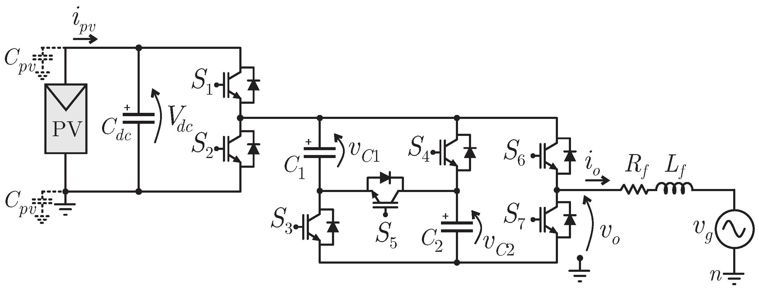 - A predictive control strategy based on CCF-MPC is proposed, acting on both the output current and the capacitor voltages of a single-phase five-level inverter.
