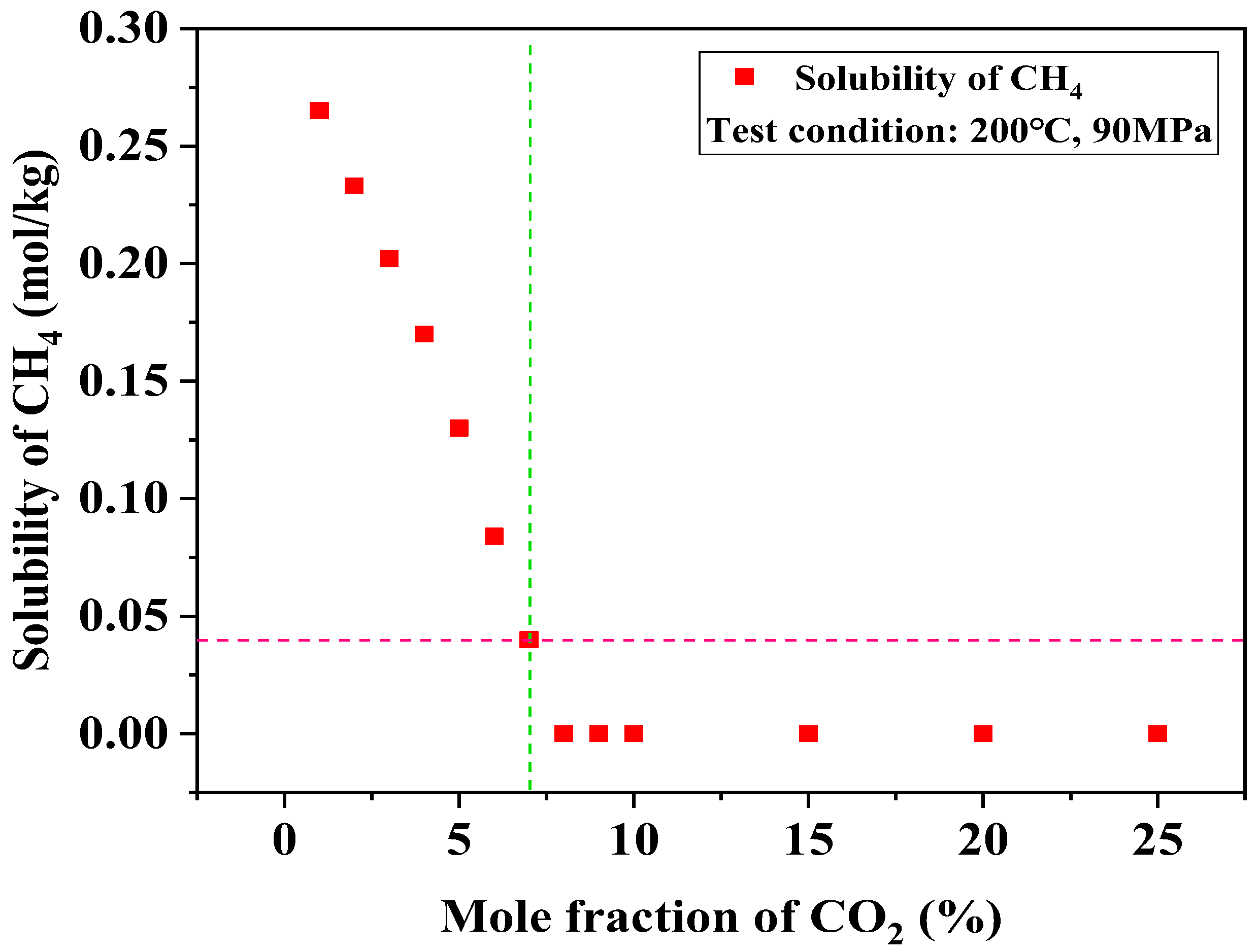 4.2.1. The Effect of CO2 and CH4 Mixing Ratio on Solubility