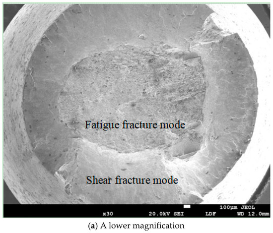 Due to limitations in experimental conditions, this study only performed SEM analysis and did not conduct metallographic microstructure analysis, energy dispersive spectroscopy (EDS), or image analysis. Future research will integrate additional analytical techniques to explore the material’s microstructure and establish connections between fracture morphology, loading conditions, and microstructural features. Moreover, leveraging the experimental findings from this study and employing finite element simulation methods, defect-tolerant design principles will be implemented in pump components to improve the operational reliability of the plunger pump.