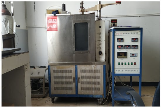 The static condition experiment was designed to simulate the operational state during drilling suspension. The experimental materials included methane gas, seawater, and various drilling fluid systems: seawater/bentonite mud, seawater/formation clay mud, seawater polymer mud, Plus/KCl mud, and HEM mud. The experimental setup employed the SHD-1 Hydrate Kinetics Apparatus (the equipment was manufactured by Nantong Feiyu Petroleum Technology Development Co., Ltd., Nantong, China, Figure 1).