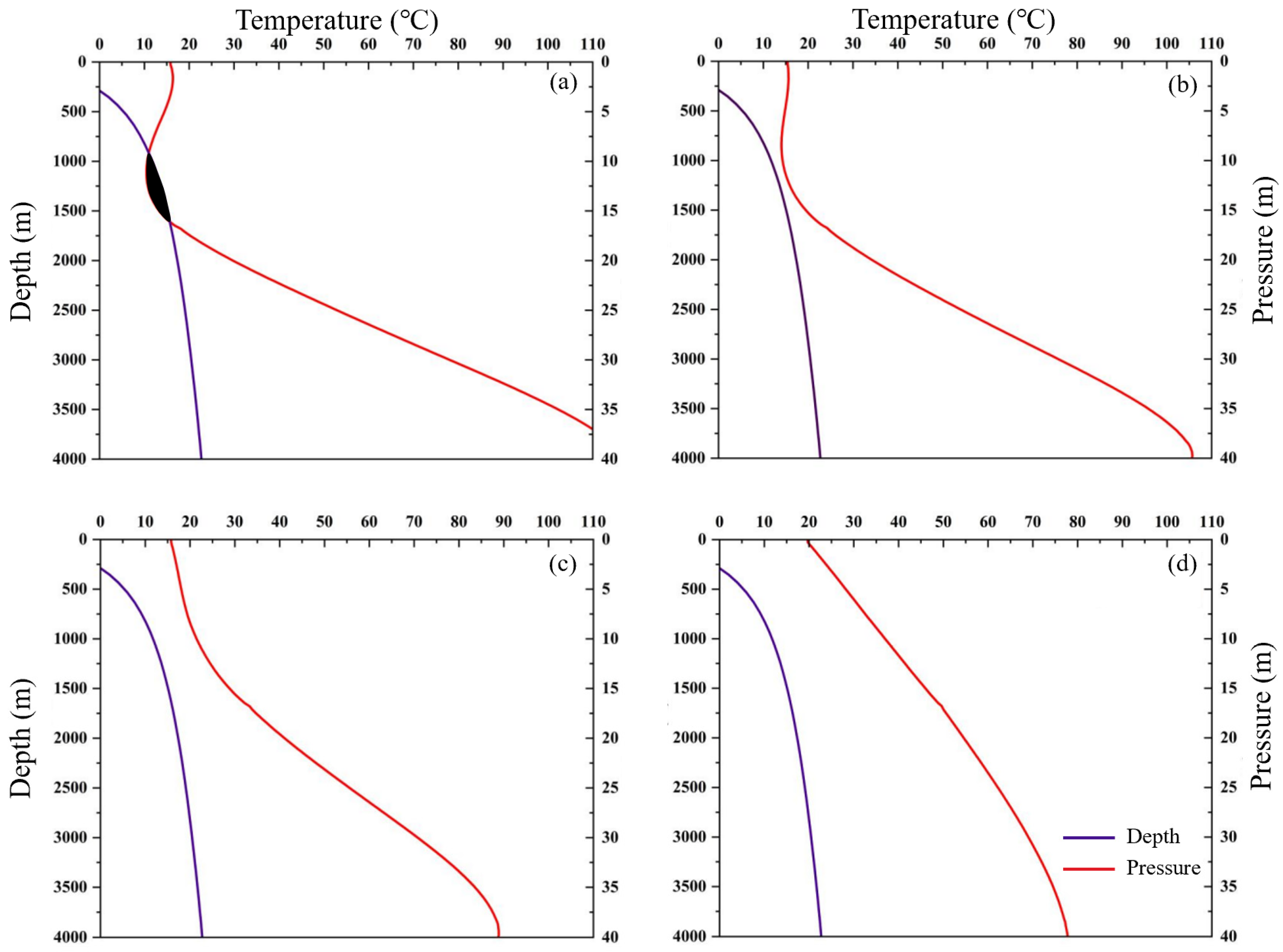 In contrast, when circulation stops or is reduced to ultralow rates, the absence of frictional heating and decreased convective transport lead to a rapid decline in annular temperature, which can intersect the hydrate phase boundary. This explains why hydrate risks are negligible during normal drilling circulation but become significant in well-killing or prolonged shut-in scenarios.