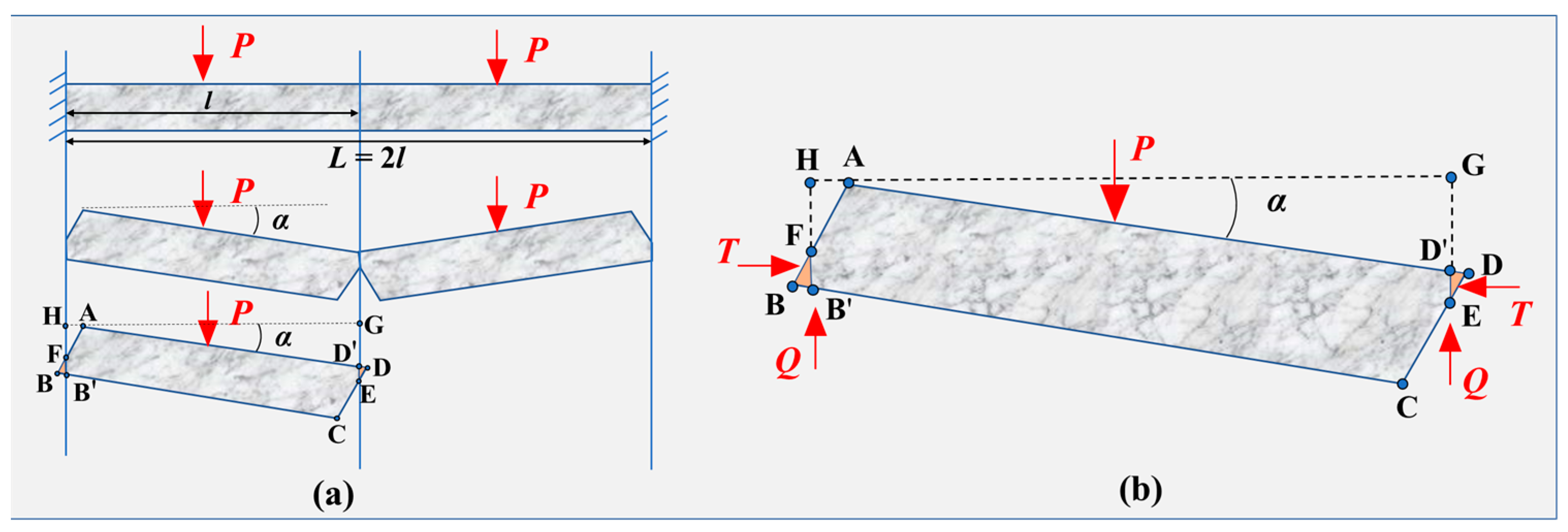 - It is assumed that the left and right hinge points of the two key blocks remain fixed, while vertical subsidence occurs at the center.