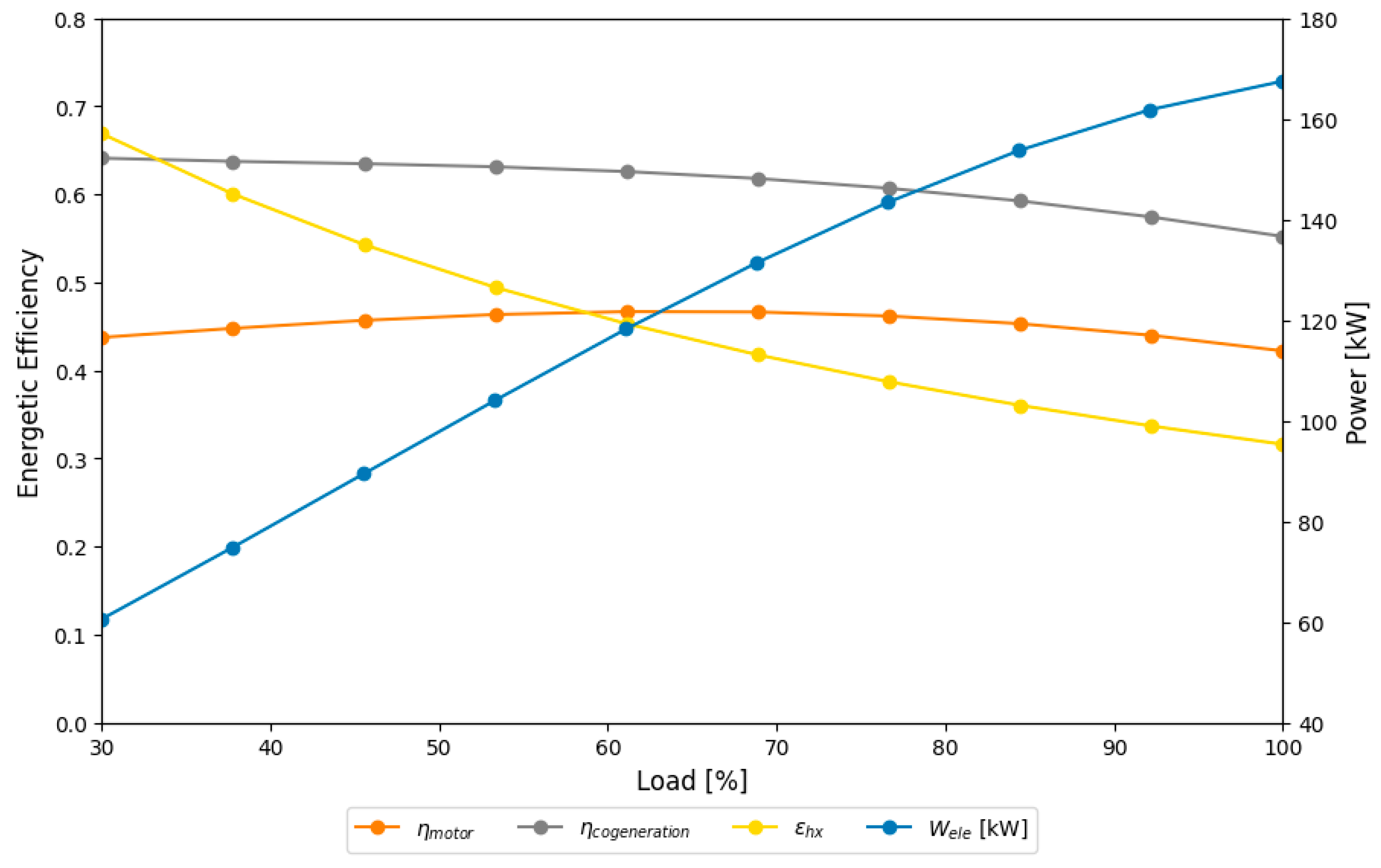 - The electricity production was 167.40 kW, with 100% engine load and a heat transfer rate of 51.55 kW.