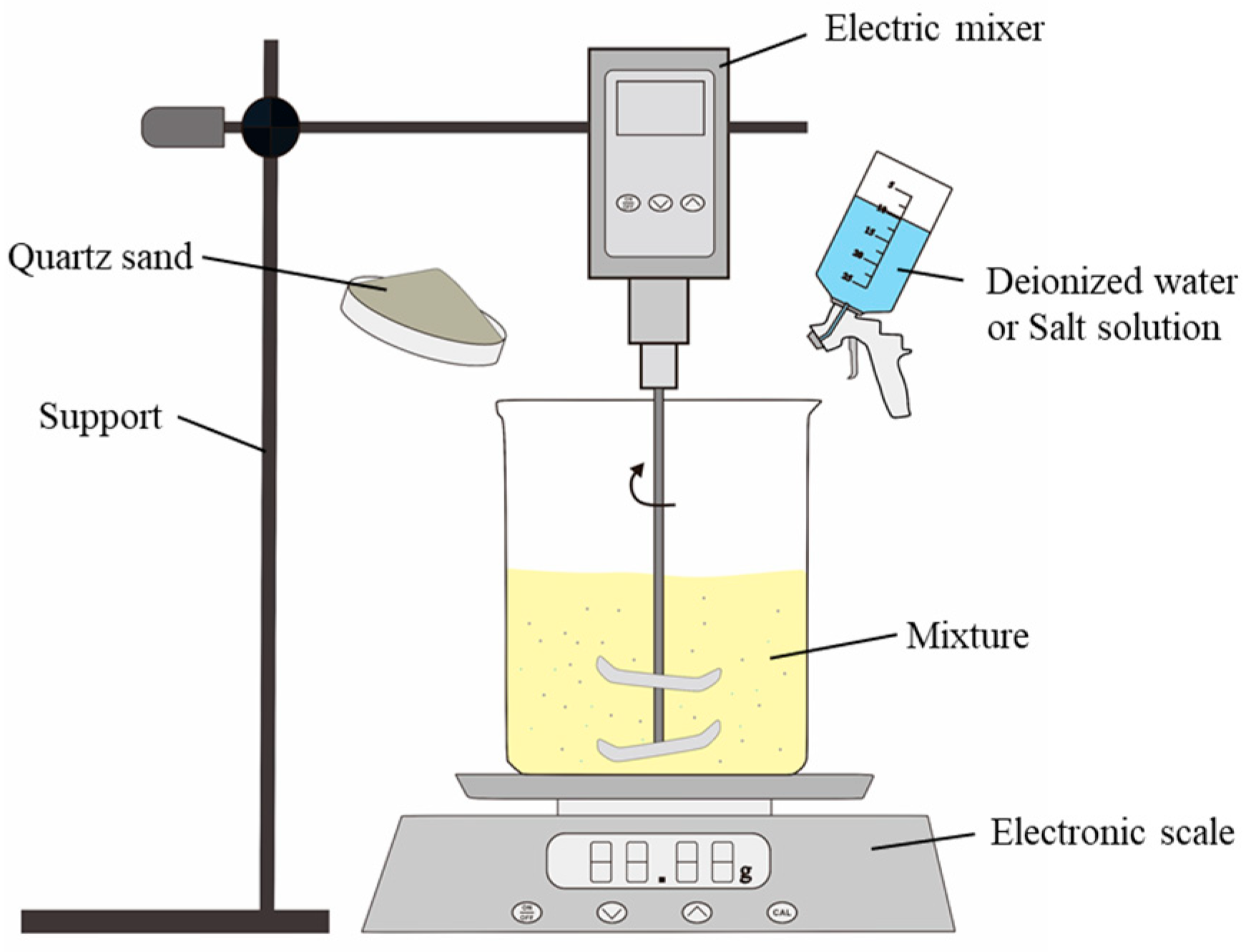 | Sample Number | Sand Content Ratios Rₛ (%) | Water Chemistry | Salt Solution Concentrations (mol/L) |