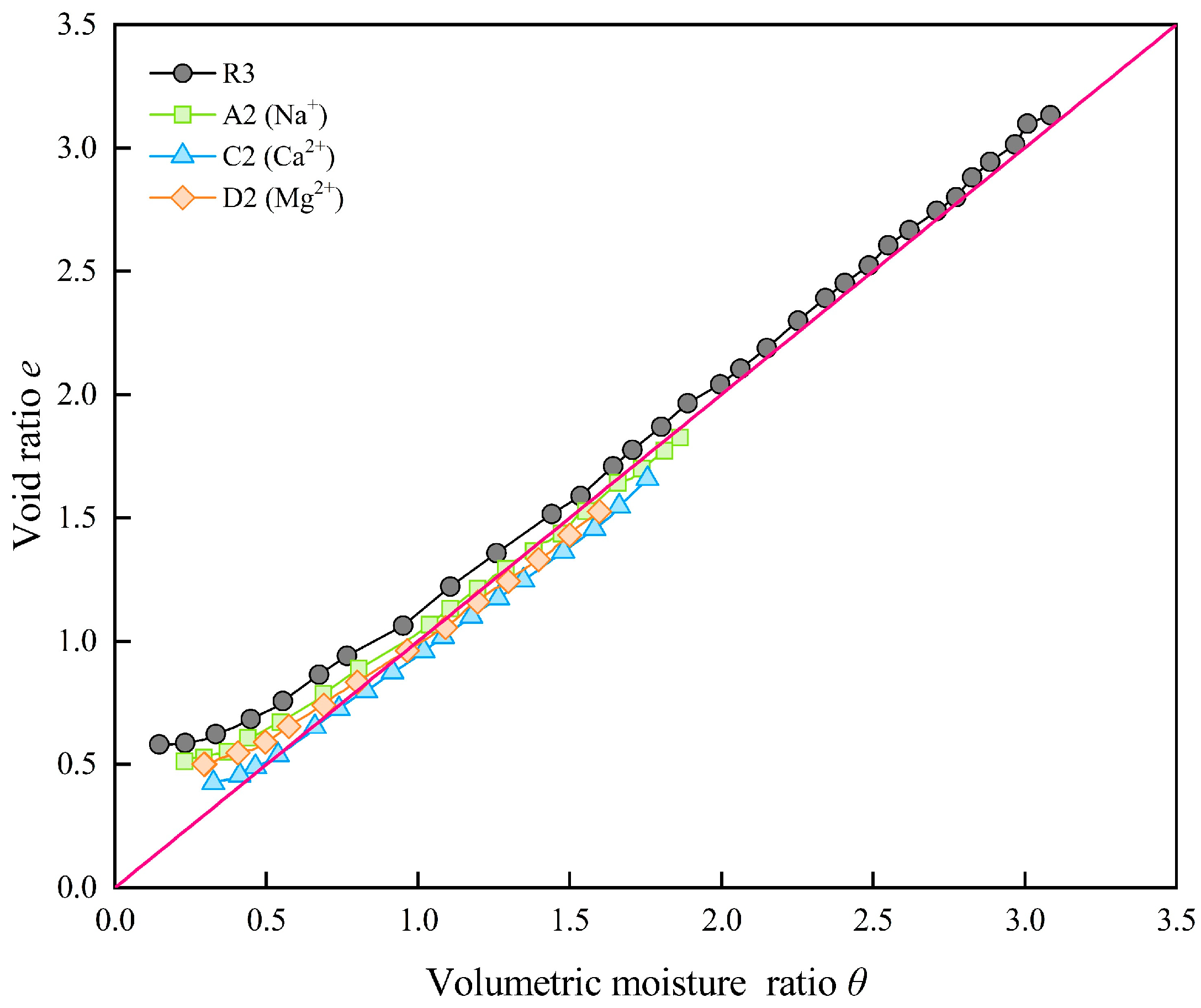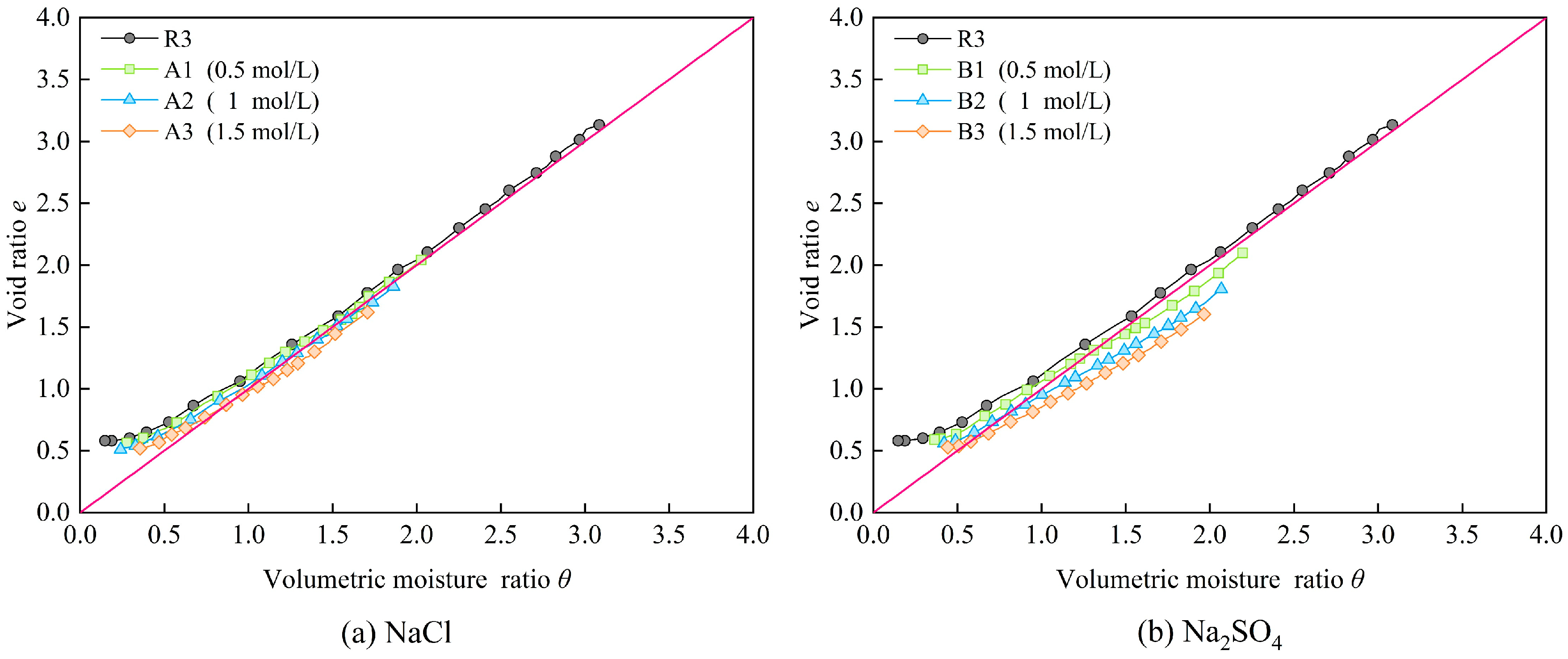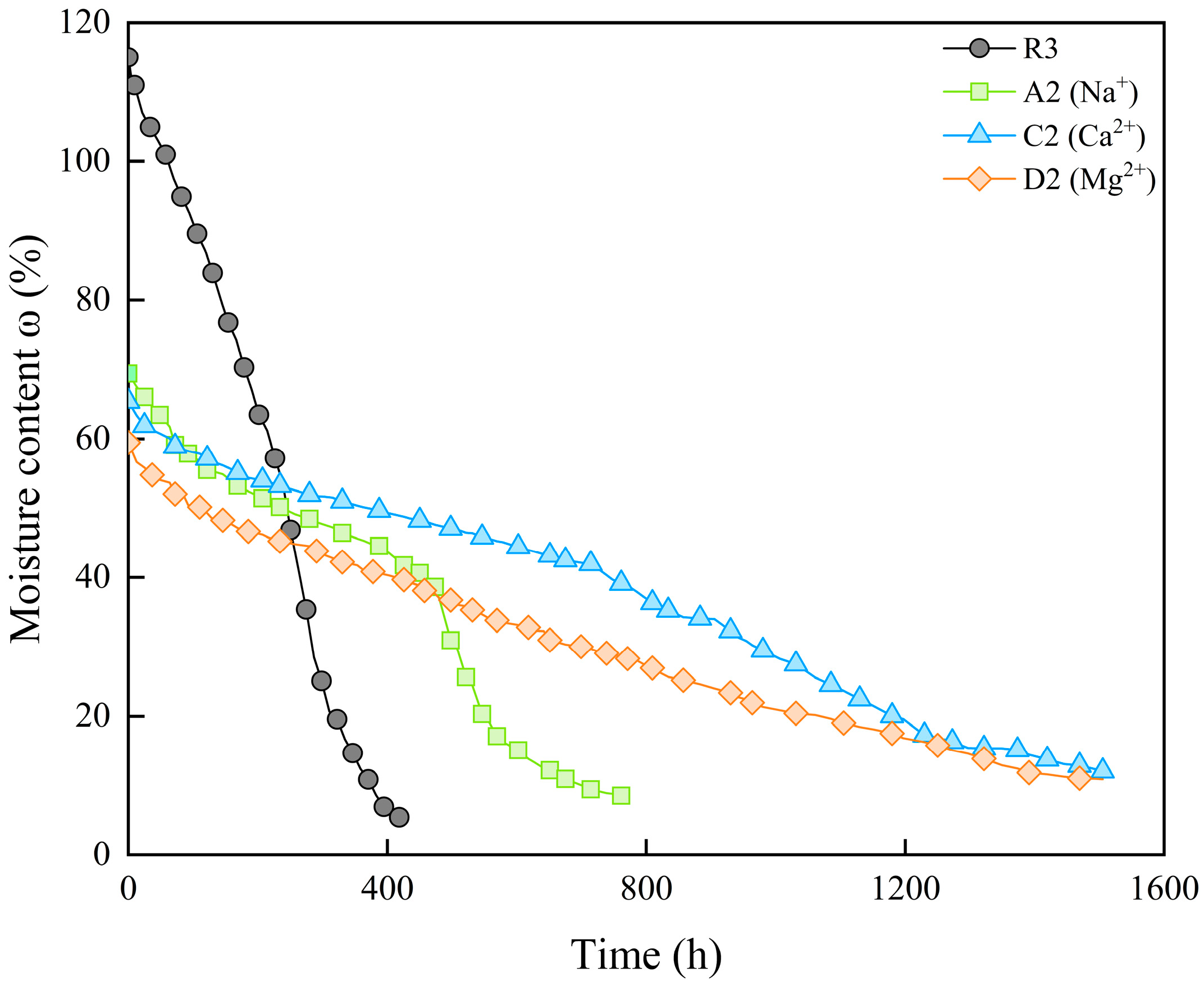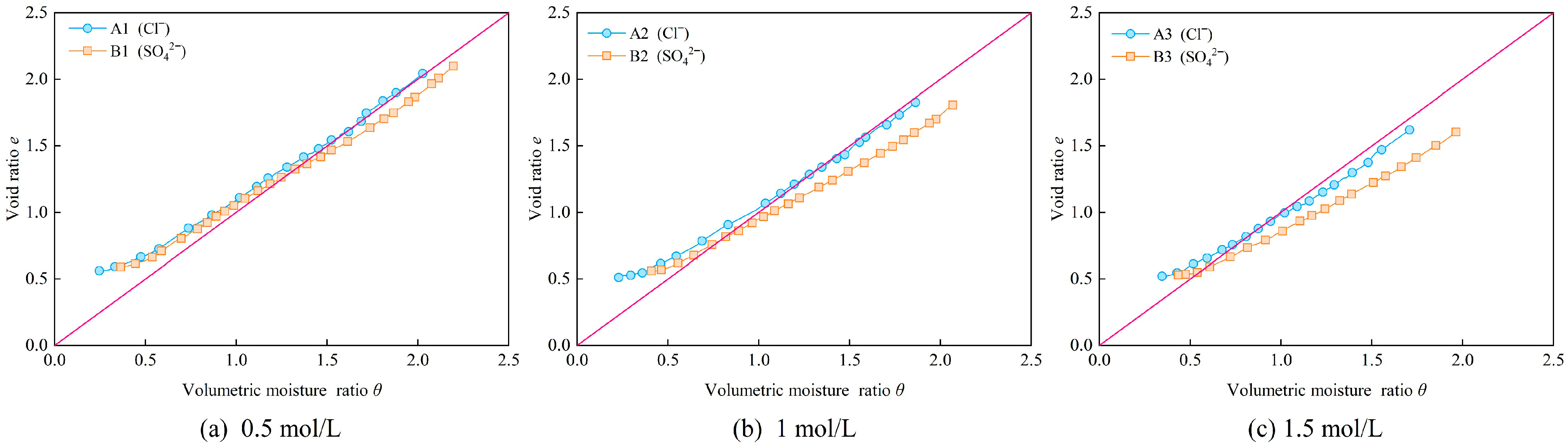 - In this study, the discussion on the influence of cations in pore water on the shrinkage properties of bentonite–sand mixtures was expanded from Na+ to Mg2+ and Ca2+. The shrinkage behavior of the bentonite–sand mixture is suppressed by soluble salts in the pore water. The strength of this suppression is influenced by factors including cation concentration, valence, ionic radius, and the crystallization characteristics of the soluble salts. When the pore water contains crystallizable soluble salts such as Na2SO4, the crystallization process will result in an overestimation of the measured water mass. Therefore, the thin-film technique should be carefully considered when measuring moisture content under the influence of pore water chemistry. An appropriate concentration of NaCl can effectively reduce the saturated swelling and drying shrinkage effects in the bentonite–sand mixture. The addition of NaCl only results in a few extensions of the shrinkage time. However, the other soluble salts involved in this experiment, due to the crystallization effect, caused the sample to be in a looser state and hence delay the shrinkage process, which is not conducive to practical engineering applications.