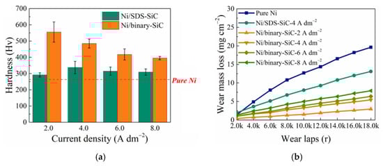 - Shi, L.; Sun, C.; Gao, P.; Zhou, F.; Liu, W. Mechanical properties and wear and corrosion resistance of electrodeposited Ni–Co/SiC nanocomposite coating. Appl. Surf. Sci. 2006, 252, 3591–3599. [Google Scholar] [CrossRef]