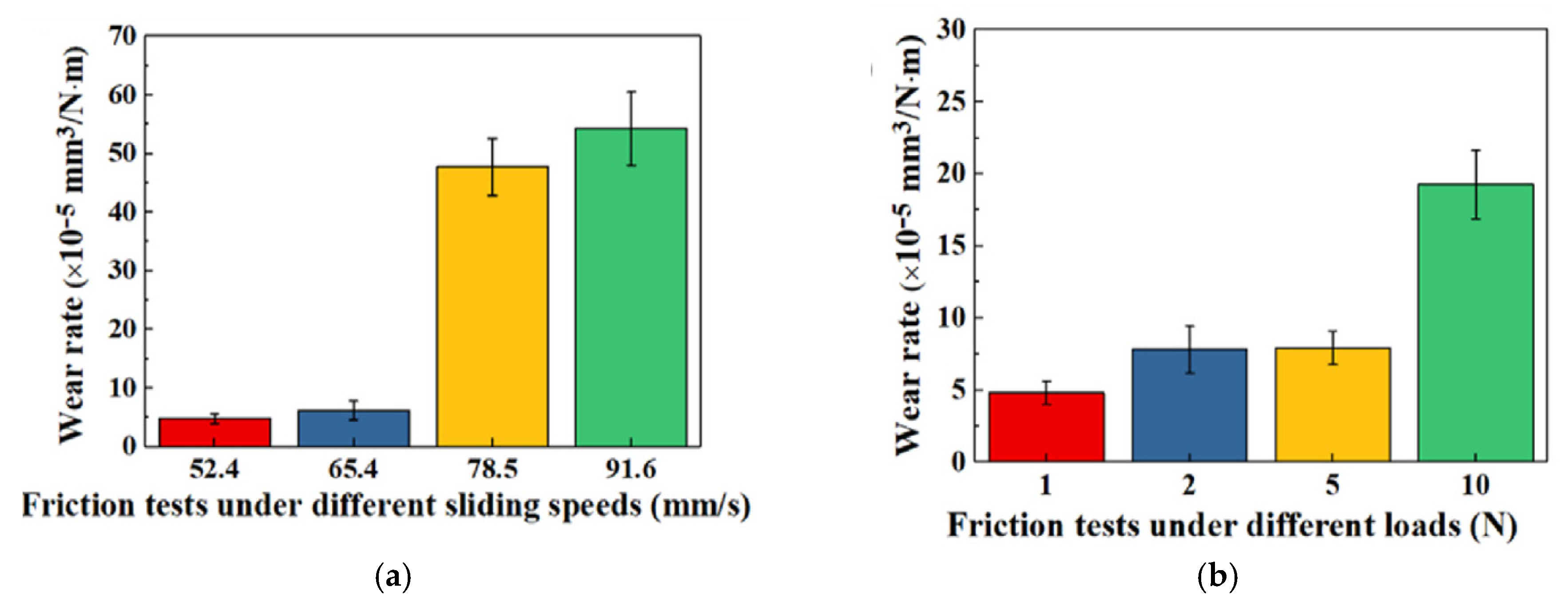 (a) Rate of wear of the Ni-WS2 mold insert at varying sliding speeds and (b) different loads [74].