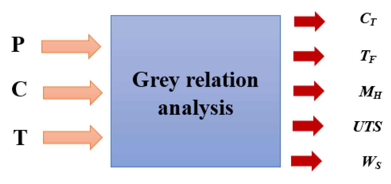 Conducting tests requires significant time, energy, and resources. Numerical approaches, capable of predicting and modeling a wide range of events, they have been developed to address the problem of selecting production parameters for composite coatings. These methods are more efficient for analyzing experimental data and are employed when accurate mathematical models are unavailable. Examples of numerical techniques used in this context include the Taguchi approach, the RSM, the CCD method and ANOVA [16,17,18,19], artificial neural networks (ANNs) [20], and gray relationship analysis (GRA) [18,19].