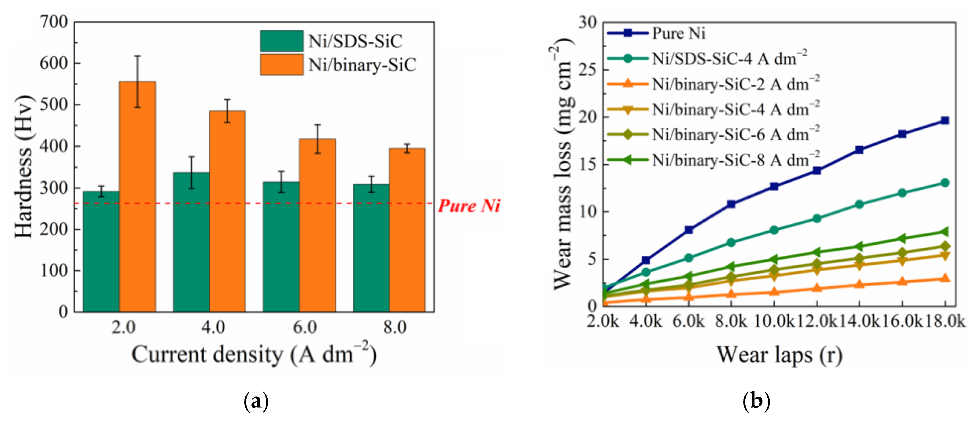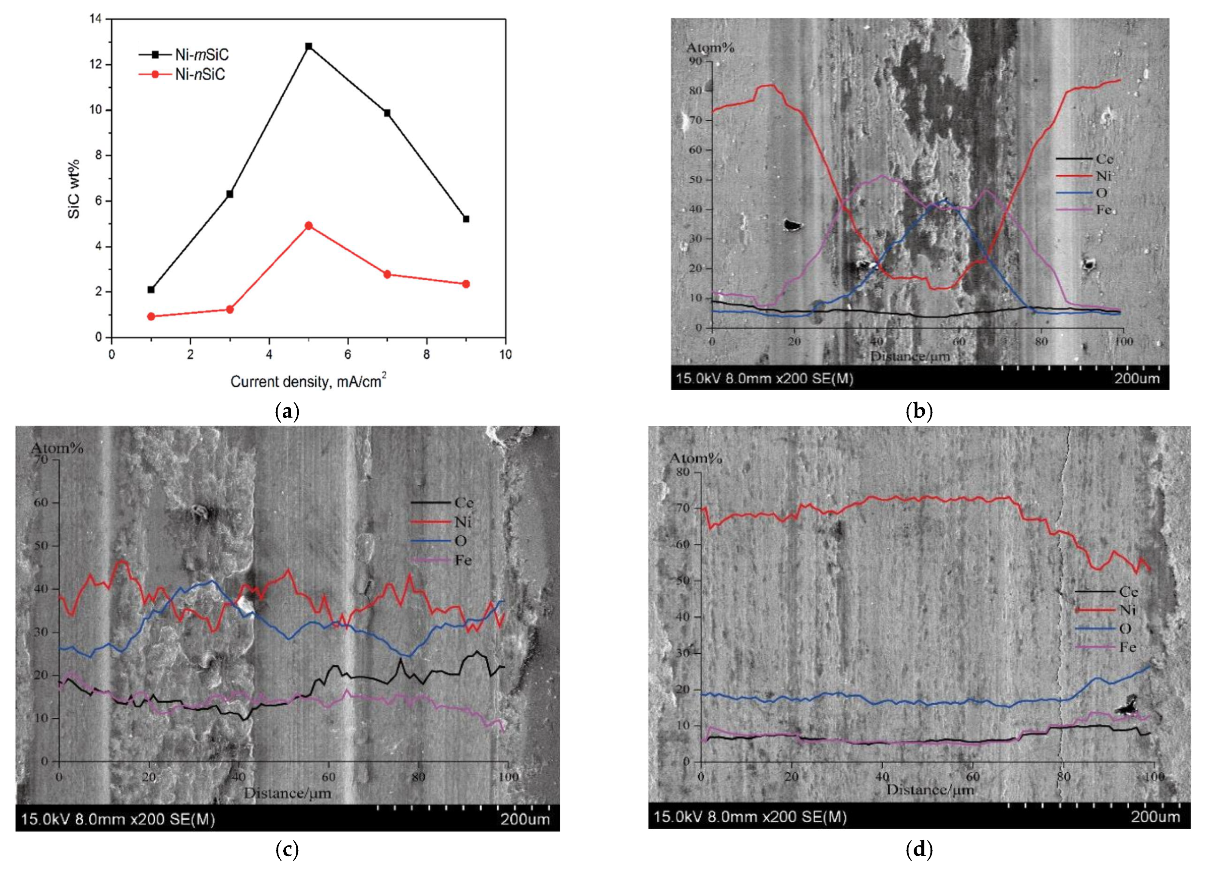 - Jiang, W.; Shen, L.; Qiu, M.; Wang, X.; Fan, M.; Tian, Z. Preparation of Ni-SiC composite coatings by magnetic field-enhanced jet electrodeposition. J. Alloys Compd. 2018, 762, 115–124. [Google Scholar] [CrossRef]