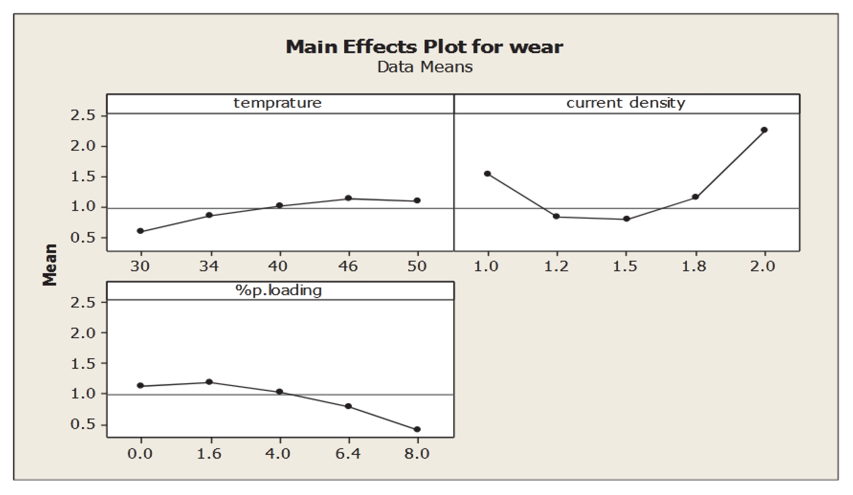 A novel extended Taguchi technique was created by C. R. Raghavendra et al. (2021) [16] to investigate the relationship between specific wear rate and coating process variables. Electrodeposition of Ni-α nano Al2O3 particle onto 6061 aluminum. ANOVA indicates that temperature and particle concentration had the greatest effects on the particular wear rate, contributing 55.07% and 31.94%, respectively. Particle concentration and current density together have a greater effect on the specific wear rate (5.48%), while current density has the least effect (3.46%).