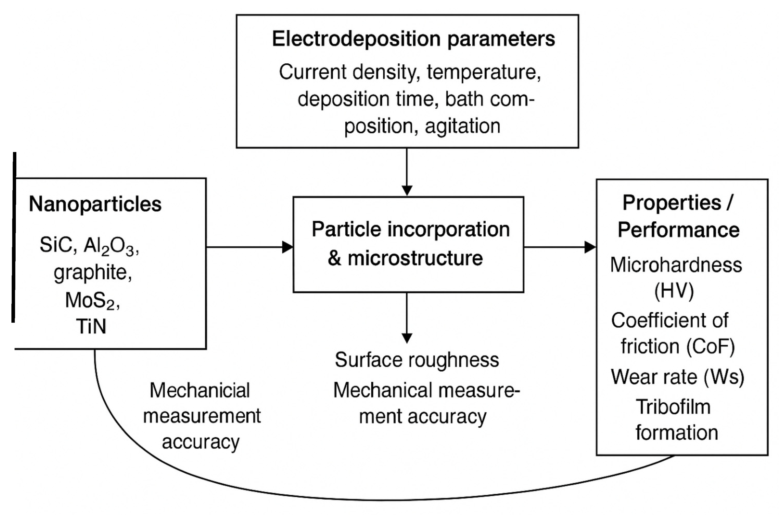 When nanoparticles are co-deposited in a metal matrix, nickel, electrolyte composition, and experimental conditions are critical factors. It can be difficult to get a clear picture of how experimental parameters affect things.