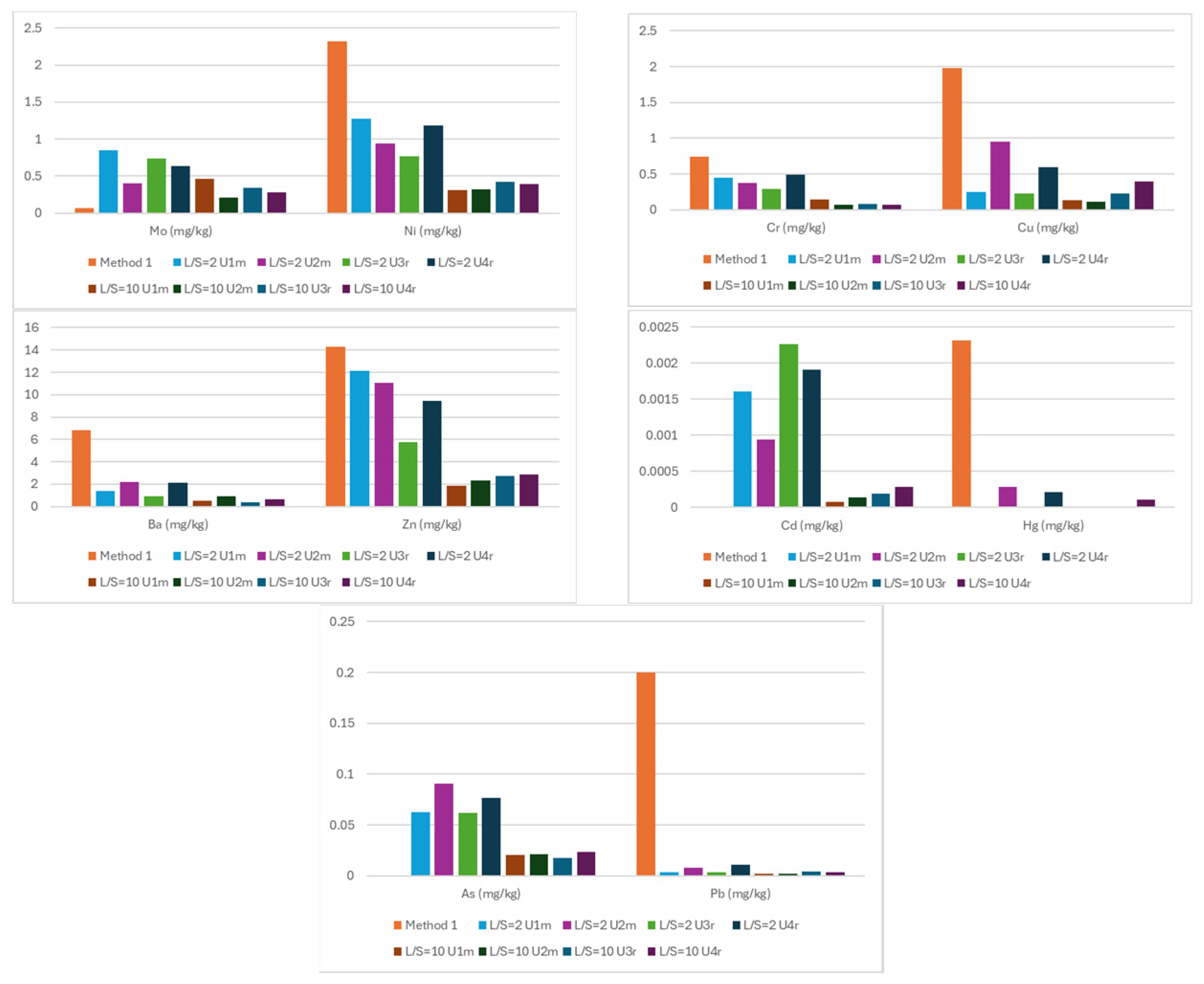 | Sample | Method 1 | L/S = 2 U1m | L/S = 2 U2m | L/S = 10 U1m | L/S = 10 U2m | L/S = 2 U3r | L/S = 2 U4r | L/S = 10 U3r | L/S = 10 U4r | Max Limit Value [7] |