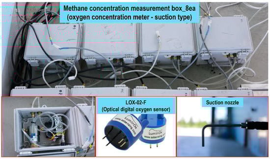 Gas concentration was measured using electrochemical oxygen sensors (LOX-02-F, SST Sensing Ltd., Livingstone, Scotland, UK), as shown in Figure 3. The conversion of oxygen depletion to equivalent methane volume concentration follows established safety-assessment principles based on the Limiting Oxygen Concentration (LOC), as specified in IEC 60079-29-2 and NFPA 69 [19,20].