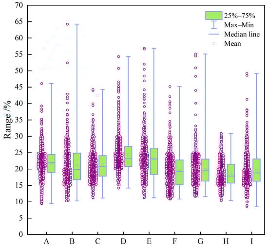 Based on the above ranges, a total of 187 abnormal samples (accounting for 2.92% of the original samples) were removed. The changes in the statistical characteristics of the processed data are shown in Table 3. It can be seen that the standard deviation (Std) of each parameter has decreased, the data distribution is more concentrated, and it is consistent with the geological laws of well-logging responses in the study area.