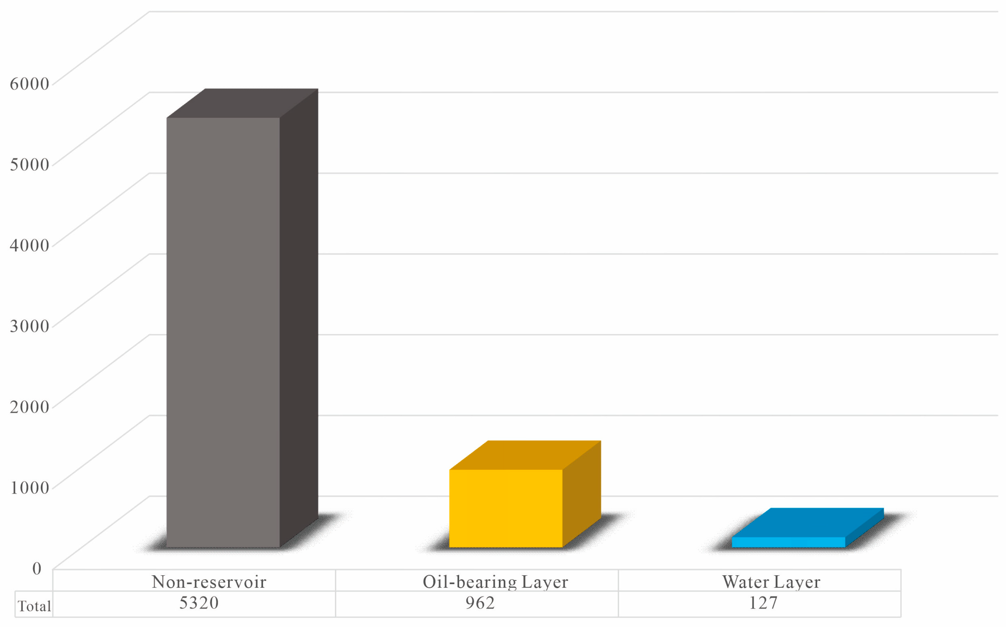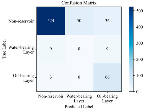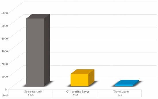 The model outputs include three reservoir types: oil-bearing layer, water layer, and non-reservoir. Importantly, in this regional dataset, the non-reservoir accounts for 83%, the oil-bearing layer accounts for 15%, and the water layer accounts for 2%. Clearly, the data distribution is imbalanced (Figure 12).