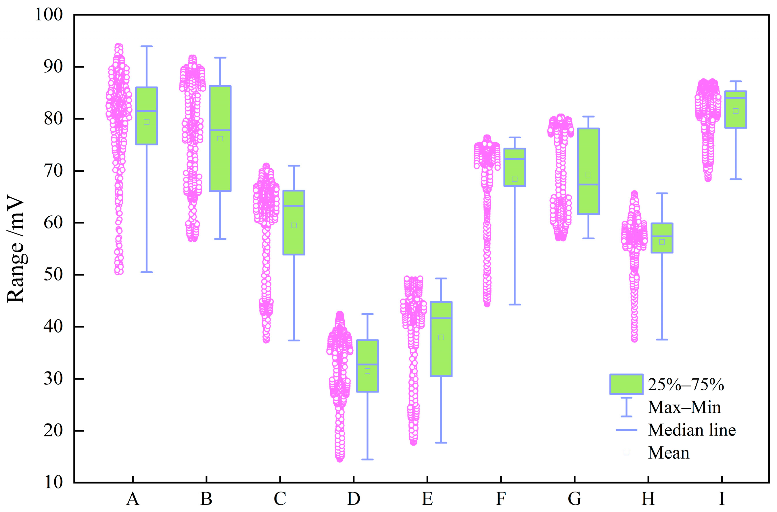 • SP: 10–95 mV (excluding extreme electrochemical anomalies).