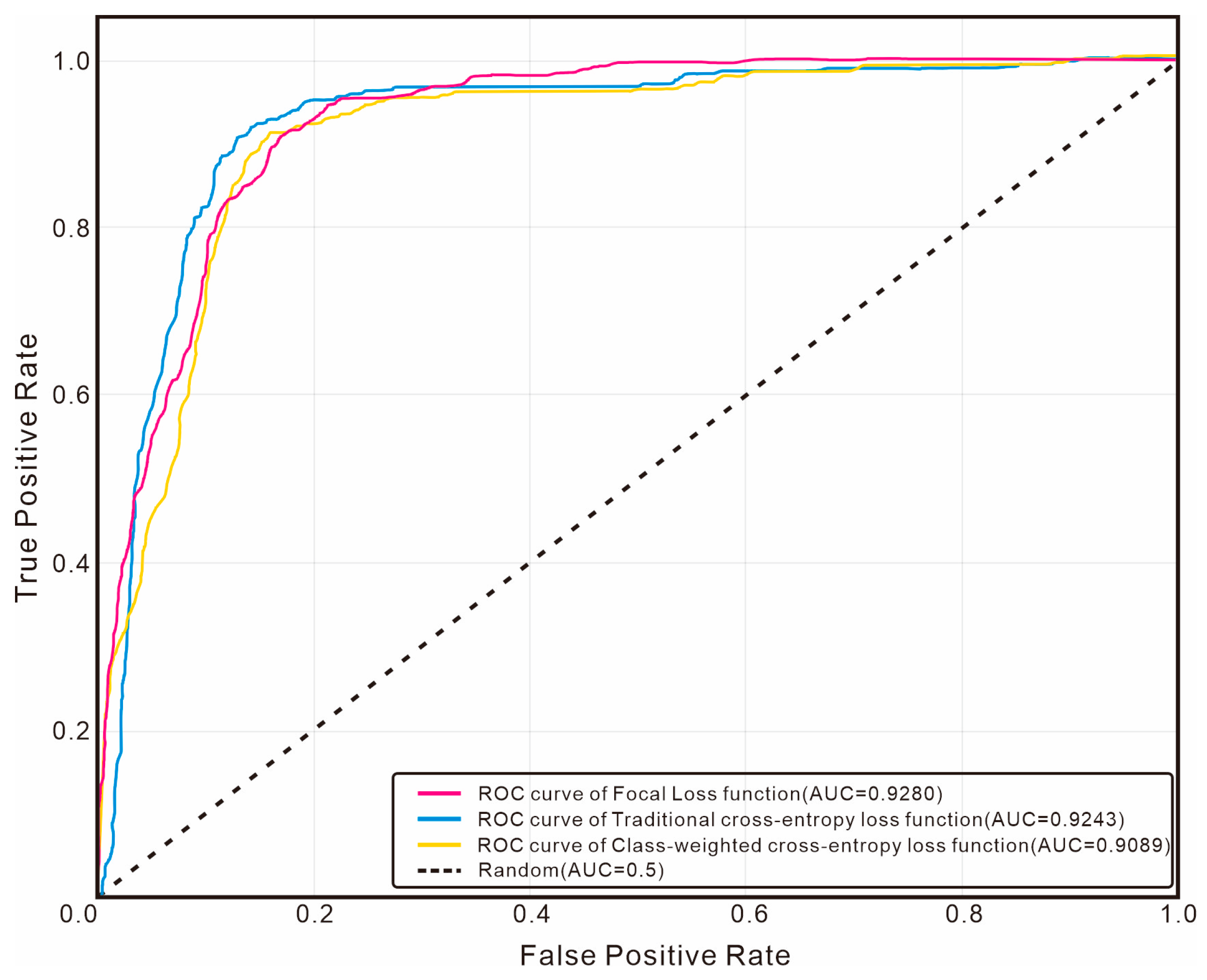 Focal Loss FunctionTraditional Cross-Entropy Loss FunctionClass-Weighted Cross-Entropy Loss Function