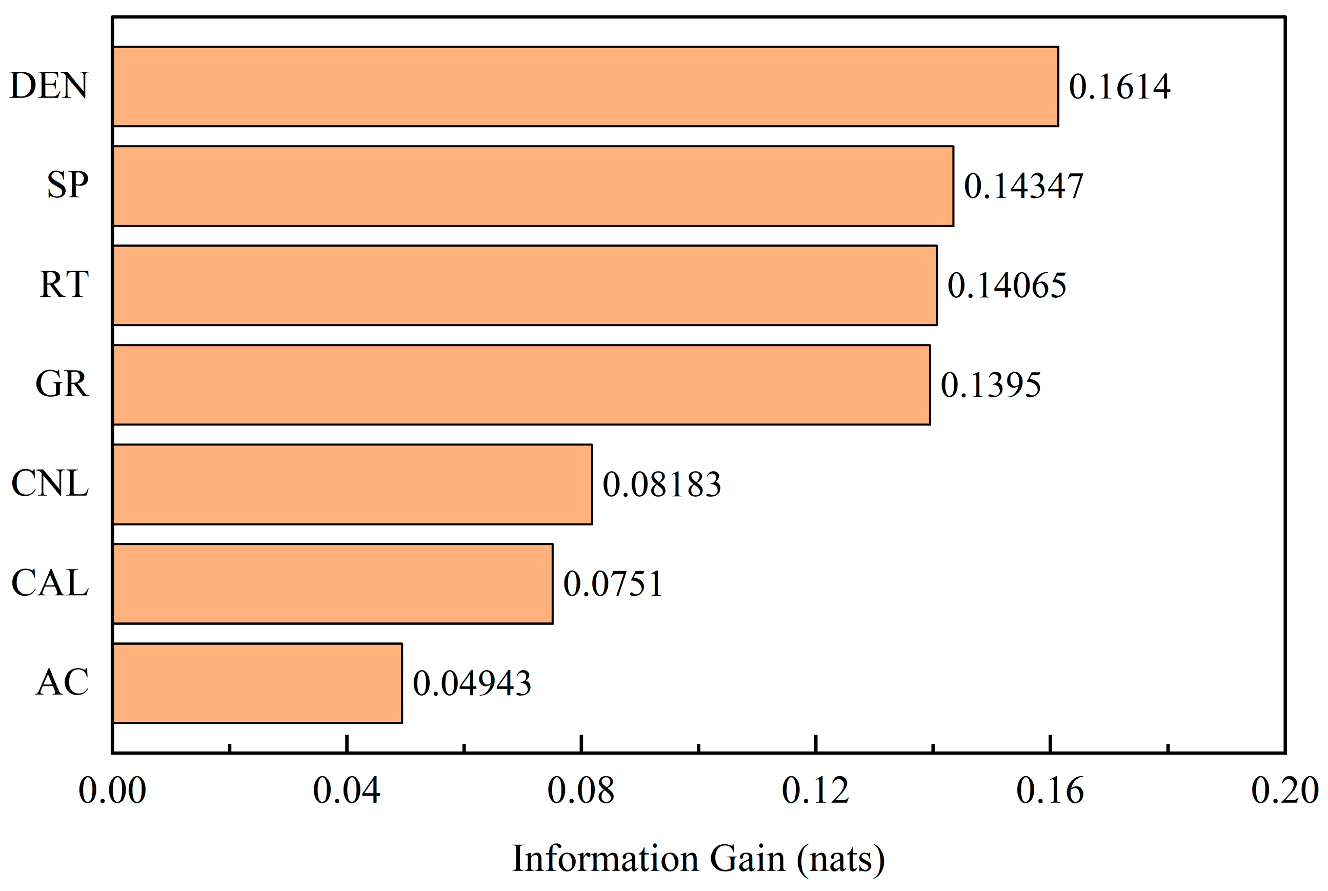 Figure 20. Mutual information ranking for well-logging parameters.