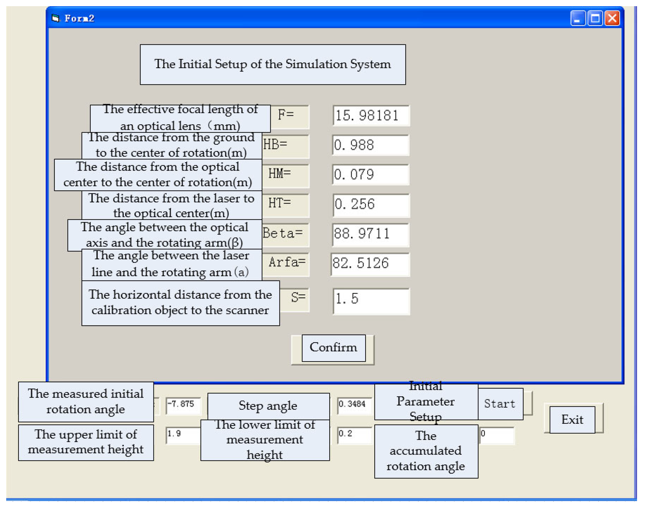 - To obtain theoretical data of several selected standard test points, and to conduct a quantitative analysis of mechanical error by comparing the theoretical data with actual data, this paper developed a simulation calculation system in accordance with the working principle and mathematical model of the scanner.
