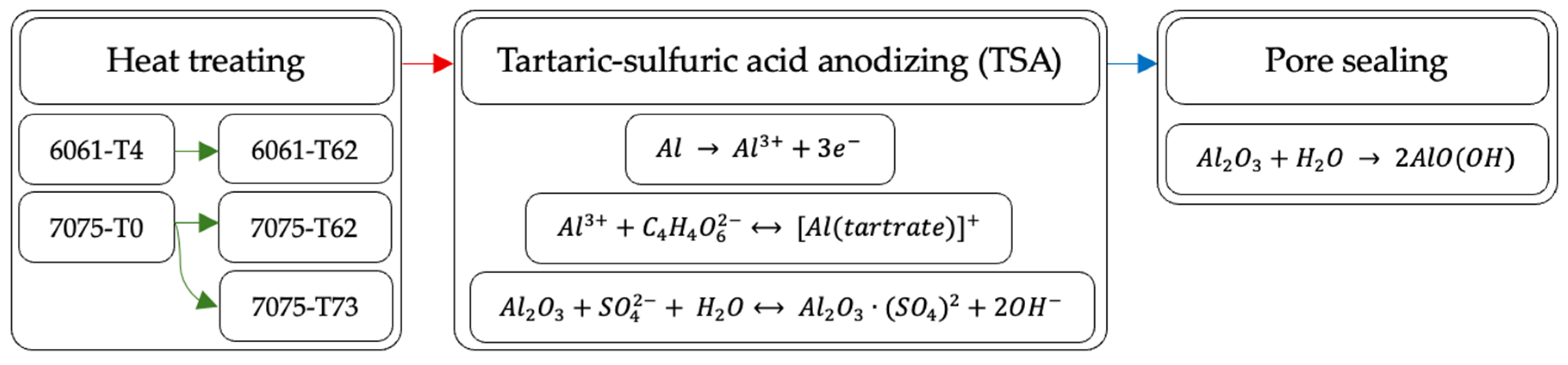 2.2. Tartaric-Sulfuric Acid Anodizing and Pore Sealing