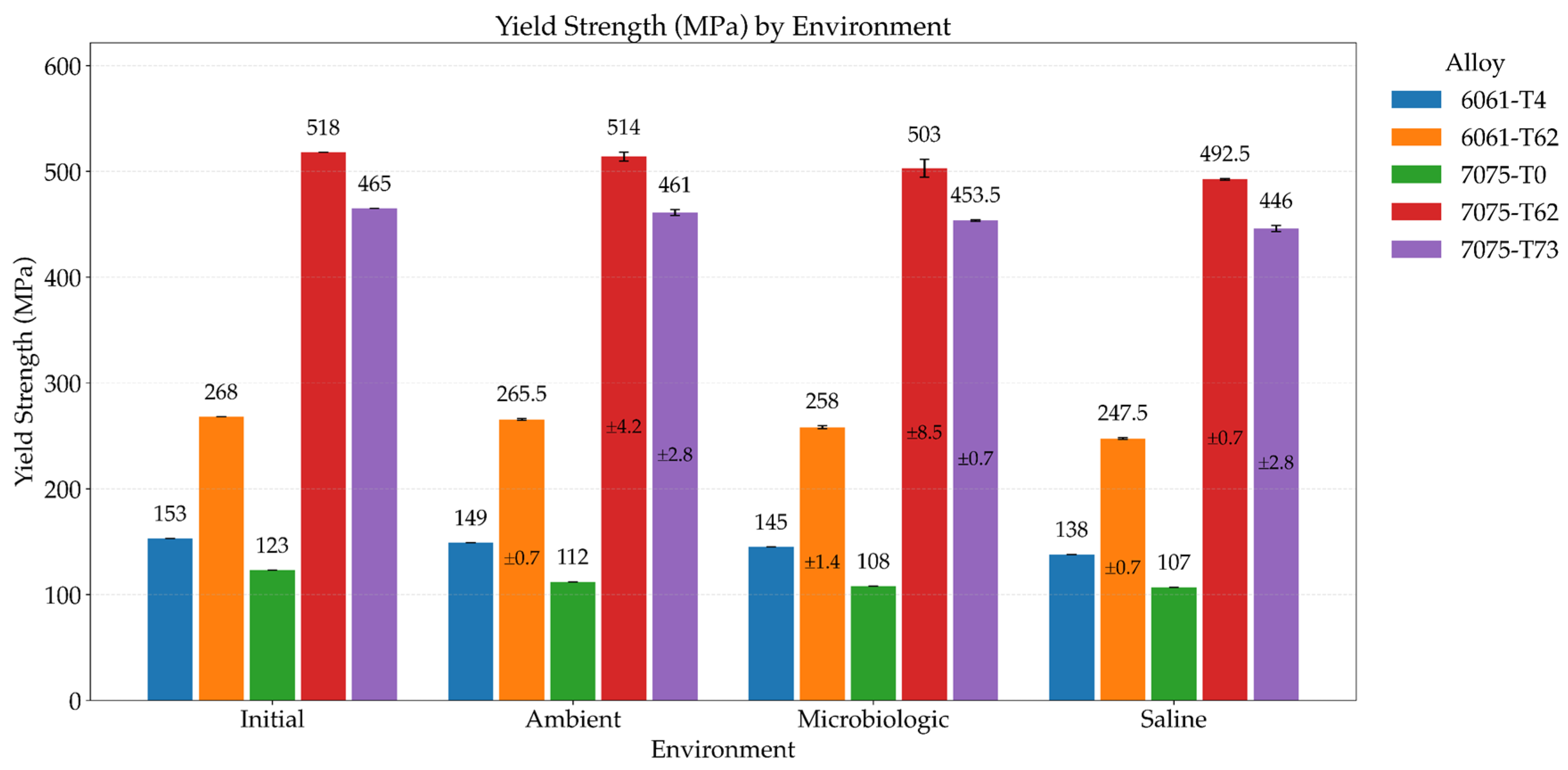 3.3. Effect of Environmental Exposure on Yield Strength
