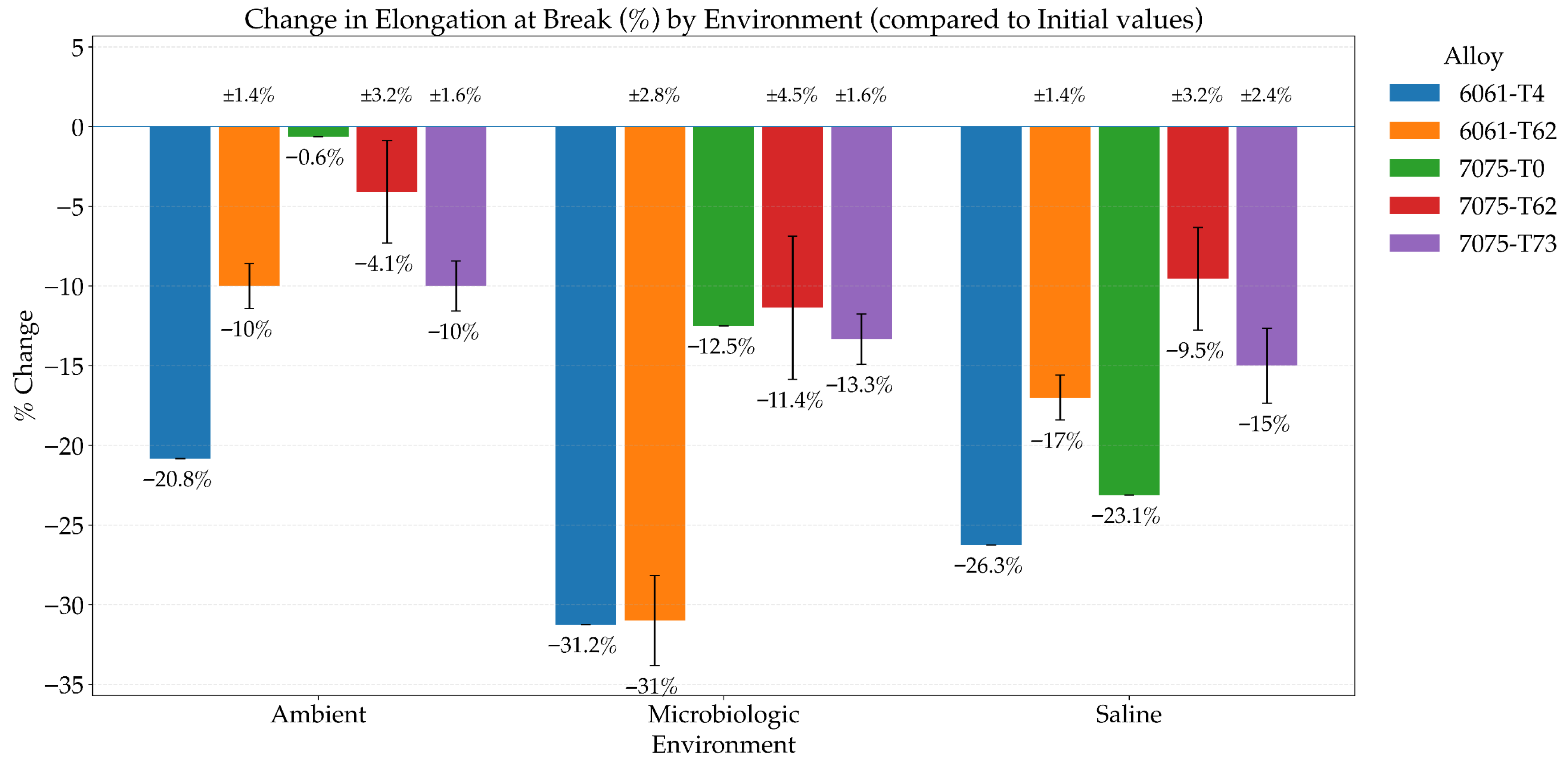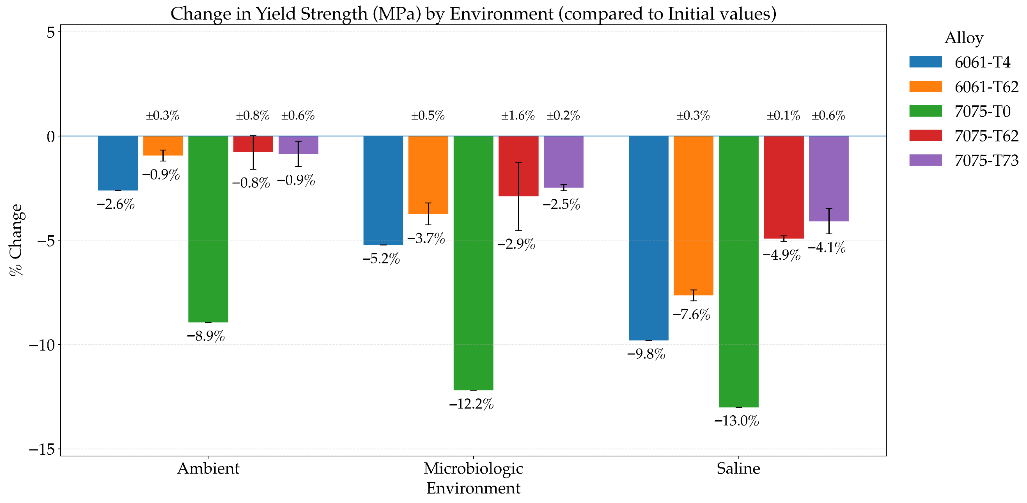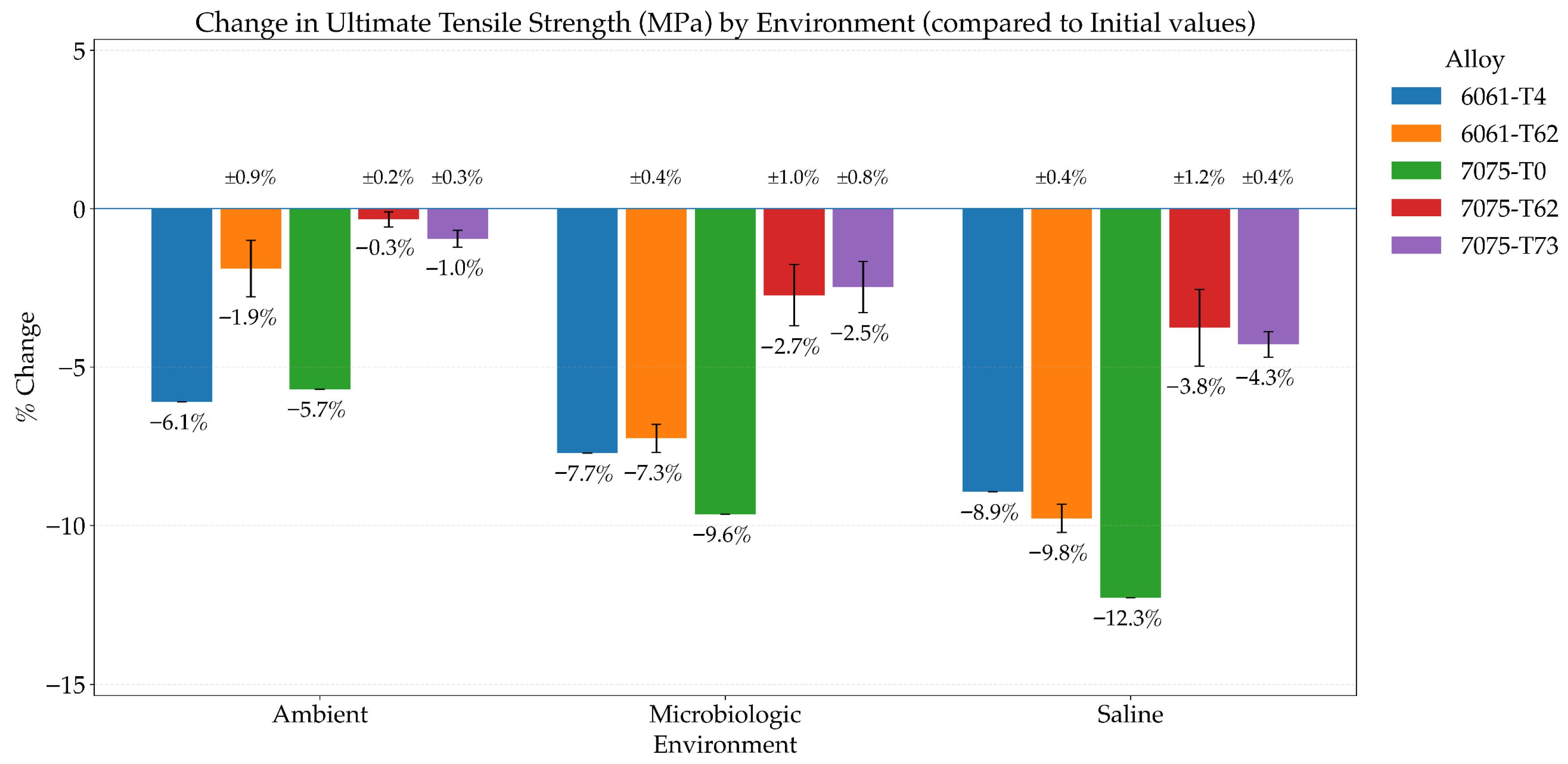 | 7075-T0 | 107 | −13.01% | 200 | −12.28% | 12.3 | −23.13% | −4.46% | −6.98% | −22.64% |