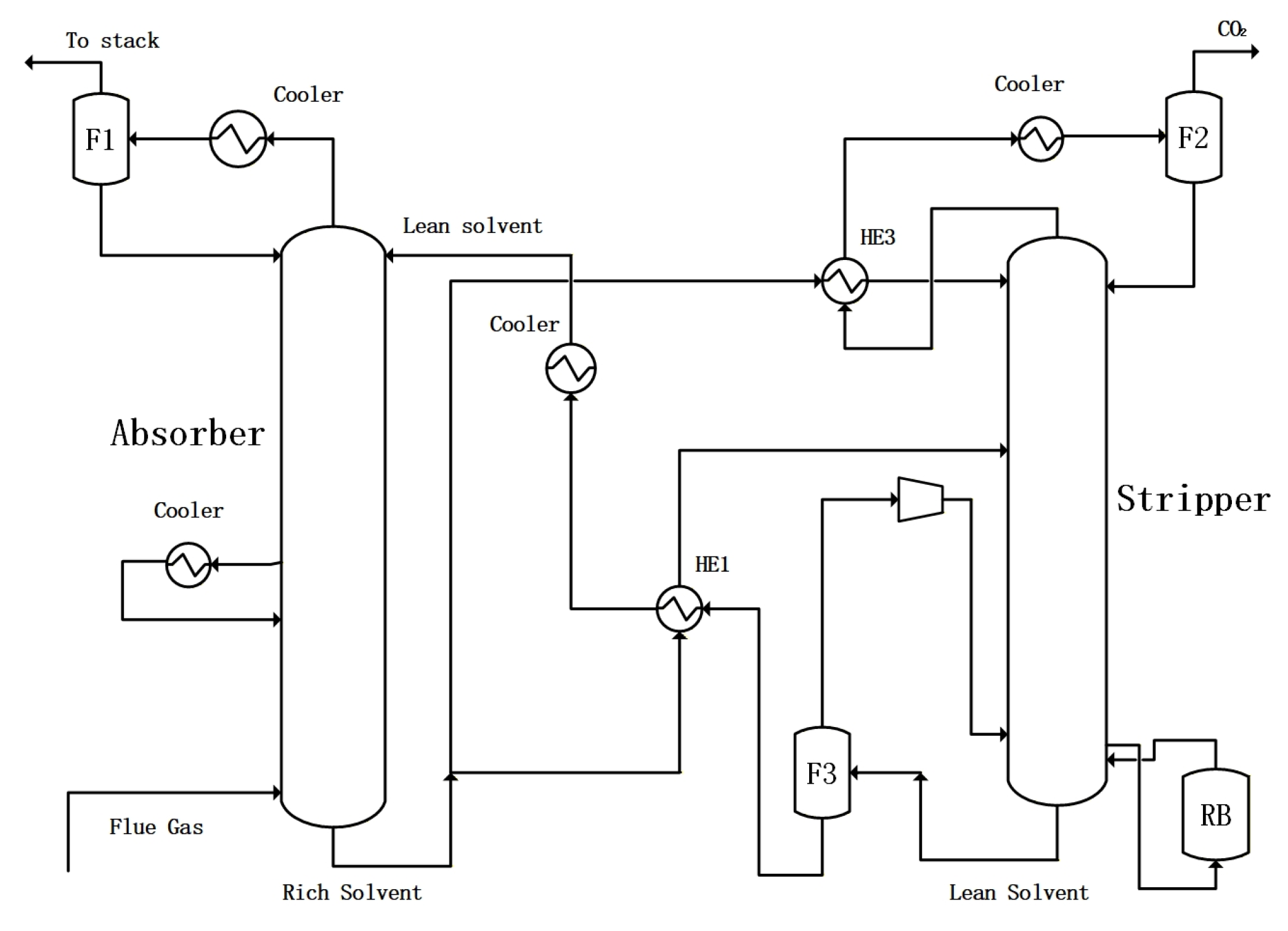 | Flue Gas | Lean Solvent | Rich Solvent | |
