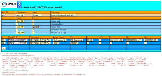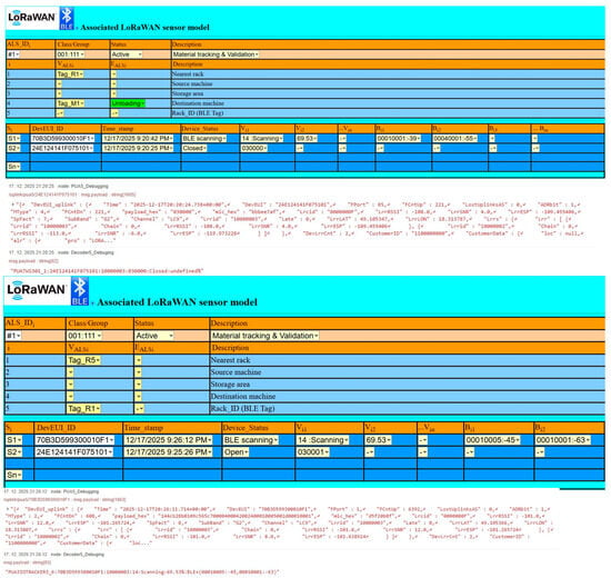 During experimental validation, all results were documented by recorded LoRaWAN up-link messages, including decoder results and visualization of the ALS model, as shown in Figure 15 and Figure 16.
